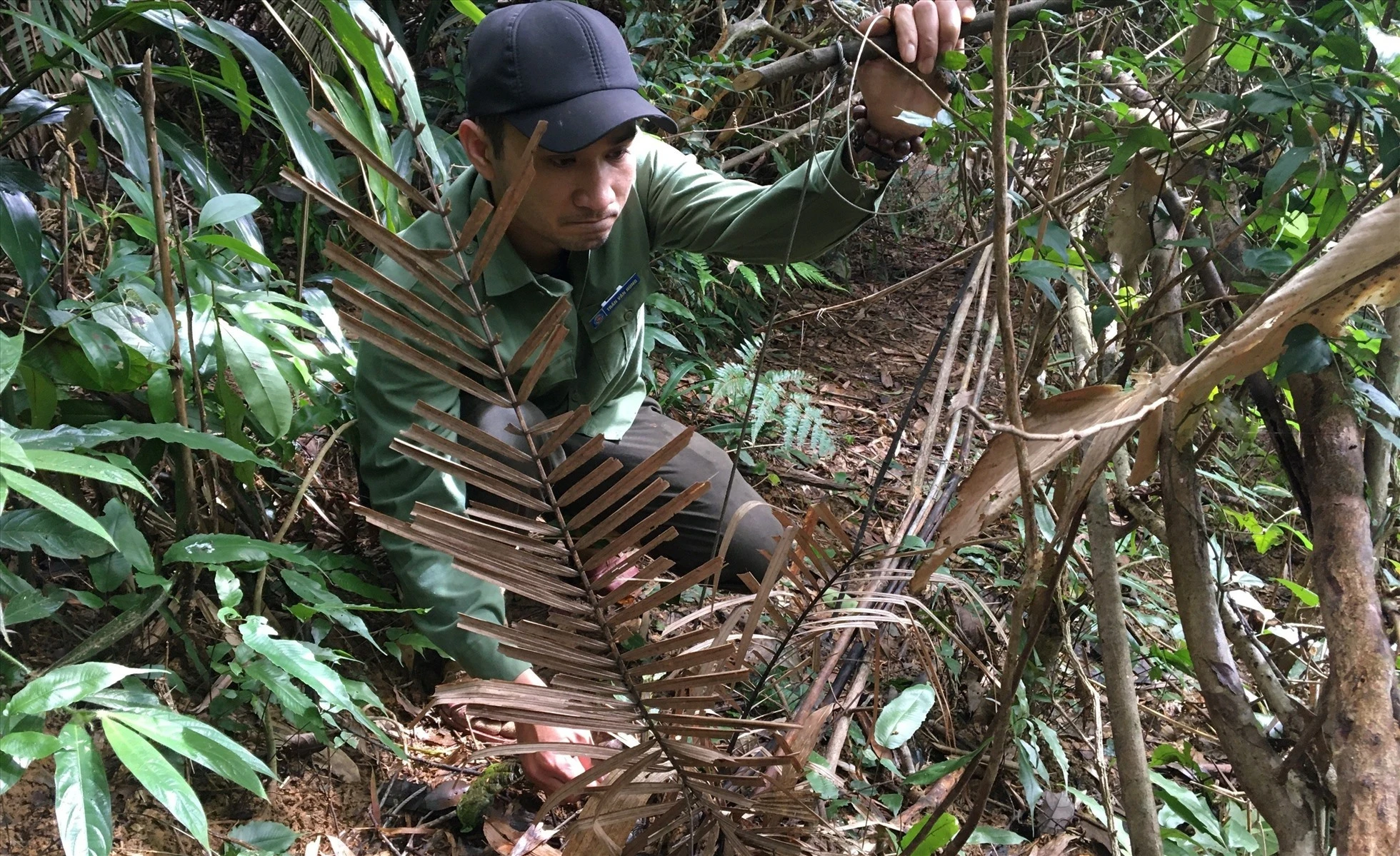 Cán bộ Khu Bảo tồn thiên nhiên Bắc Hướng Hóa (Quảng Trị) tháo gỡ bẫy thú.