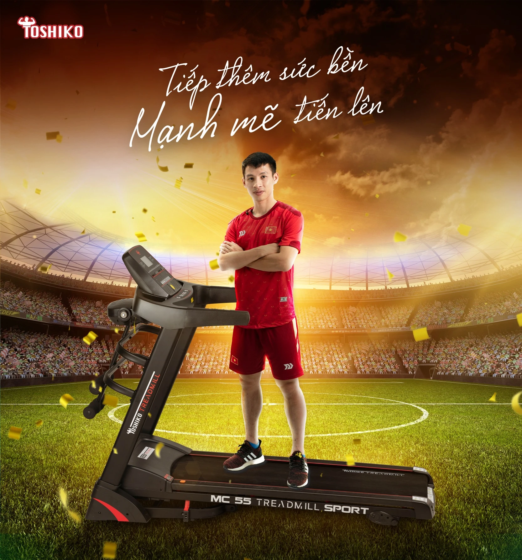 Máy chạy bộ đa năng Toshiko MC55 là máy chạy bộ lý tưởng dành cho cả gia đình với thiết kế kế gọn gàng, khung sườn bằng thép cứng cáp, bền bỉ, thách thức thời gian luyện tập. Với công suất tối đa 3.0HP, vận tốc tối đa 15 km/h, nâng dốc thủ công 12%, máy chạy bộ Toshiko MC55 hoàn toàn phù hợp cho nhu cầu đi và chạy bộ thông thường