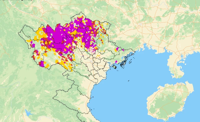 Nguy cơ lũ quét và sạt lở đất trên các sườn dốc toàn bộ vùng núi Bắc Bộ, Thanh Hóa. Trong đó cảnh báo mức độ tím (mức cao nhất) về lũ quét, sạt lở đất trên toàn bộ tỉnh Lào Cai, Yên Bái, phần lớn các tỉnh Hà Giang, Tuyên Quang, Thái Nguyên, Cao Bằng, Bắc Kạn.
