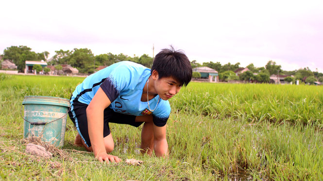 Khó khăn, song suốt 12 năm qua Đức luôn nỗ lực vượt qua sự nghèo khó để học lấy con chữ. Để đỡ đần mẹ và phụ giúp anh chị, đi học về là Đức tranh thủ ra ruộng bắt con giam (còn gọi là con rạm, một họ cua - PV).