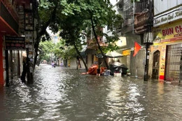 Phố Trung Lực (TP Hải Phòng) ngập nặng. Ảnh: Cổng thông tin TP Hải Phòng