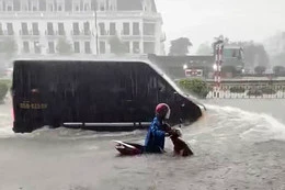 Tuy nhiên, do mưa quá lớn nên hàng loạt các tuyến phố như Tô Hiệu, Lê Lợi, Lương Khánh Thiện, Cầu Đất...ngập nặng, nước tràn vào nhà dân khiến mọi sinh hoạt bị đảo lộn.