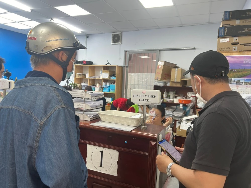 Người dân đổi bằng lái xe tại một điểm đổi bằng lái ở quận 3, TP.HCM.