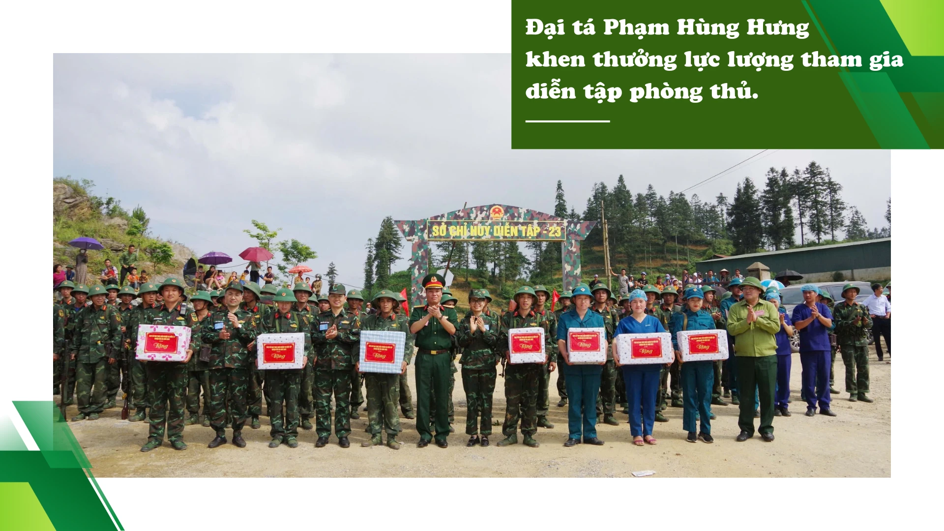 Tích cực chỉ đạo đổi mới nội dung, phương pháp, tổ chức tốt các cuộc diễn tập các cấp, qua đó nâng cao khả năng vận hành cơ chế, trình độ tham mưu, tổ chức hiệp đồng của các lực lượng trong xử lý các tình huống quốc phòng, an ninh truyền thống và phi truyền thống, đáp ứng tốt các yêu cầu nhiệm vụ. Trong năm, Đảng ủy, Bộ CHQS tỉnh đã tham mưu Tỉnh ủy, UBND tỉnh chỉ đạo tổ chức 41 cuộc diễn tập các cấp, trong đó cấp huyện 3 cuộc (diễn tập khu vực phòng thủ huyện Si Ma Cai, huyện Văn Bàn; diễn tập phòng thủ dân sự huyện Bát Xát); cấp xã 38 cuộc (diễn tập chiến đấu xã, phường, thị trấn trong khu vực phòng thủ 35 cuộc; diễn tập phòng thủ dân sự 3 cuộc), kết quả giỏi và xuất sắc, bảo đảm an toàn.