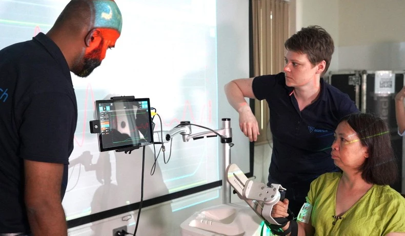 Ông Sivakumaran Krishnasamy, Giám đốc Phát triển kinh doanh quốc tế Hãng Egzotech - Ba Lan chia sẻ, robot sẽ đo được các phản hồi dù là rất nhỏ của hệ thần kinh hay cơ bắp và phân tích chúng, sau đó sẽ xác định hoạt động và biểu hiện cảm xúc của cơ bắp, từ đó tăng khả năng chẩn đoán và điều chỉnh trong quá trình phục hồi.