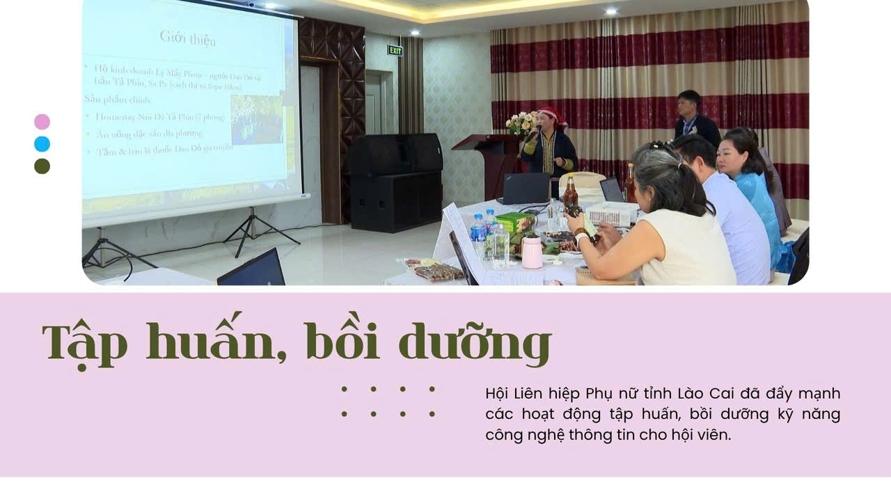 Nhận thức rõ điều đó, trong nhiều năm qua, thực hiện Dự án 8 thuộc Chương trình Mục tiêu quốc gia về phát triển kinh tế - xã hội vùng đồng bào dân tộc thiểu số và miền núi, Hội Liên hiệp Phụ nữ tỉnh Lào Cai đã đẩy mạnh các hoạt động tập huấn, bồi dưỡng kỹ năng công nghệ thông tin cho hội viên. Nhiều lớp học sử dụng điện thoại thông minh, mạng xã hội, thương mại điện tử và các dịch vụ công trực tuyến được tổ chức ngay tại cơ sở, giúp phụ nữ vùng cao dễ dàng tiếp cận, thực hành và áp dụng vào đời sống.
