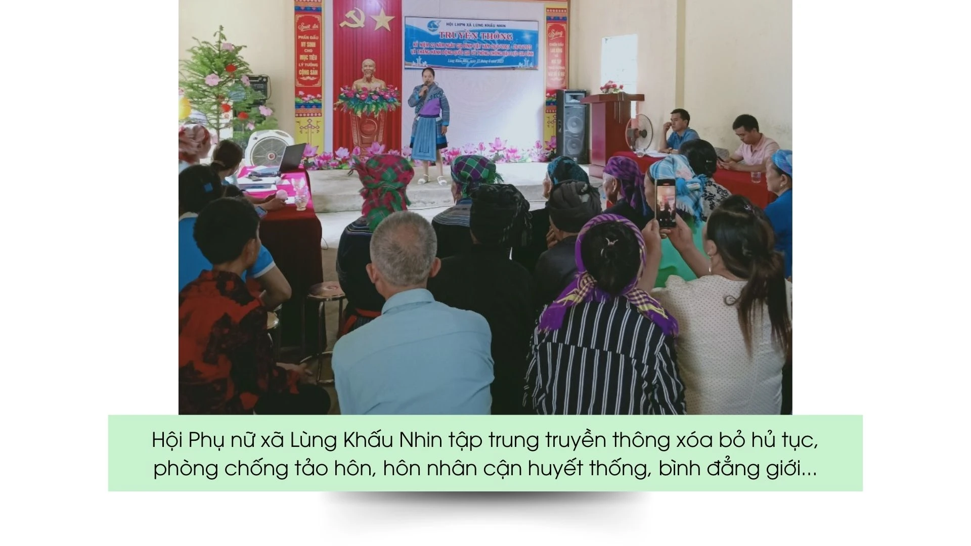Bên cạnh đó, Hội Phụ nữ xã triển khai nhiều phần việc, hoạt động hỗ trợ hội viên, gia đình hội viên có hoàn cảnh khó khăn. Chị Nùng Thiên Nga, Chủ tịch Hội Phụ nữ xã Lùng Khấu Nhin cho biết: Xã có 673 hộ, chủ yếu là người dân tộc thiểu số như Mông, Nùng, Tu Dí, Pa Dí… Điều kiện kinh tế, cuộc sống của các hộ còn nhiều khó khăn, với 386 hộ nghèo (chiếm 67,5%), 144 hộ cận nghèo (chiếm 21,4%). Đặc biệt, phụ nữ và trẻ em gái nơi đây thường phải chịu nhiều thiệt thòi bởi tác động của những tập tục lạc hậu.