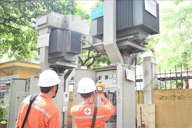 Công nhân điện lực kiểm tra tình trạng vận hành của thiết bị. Ảnh minh họa