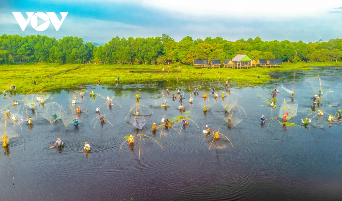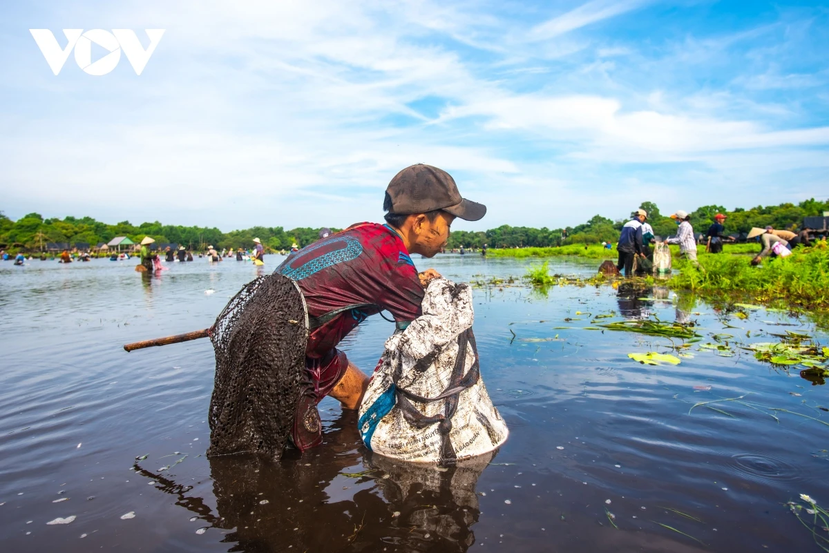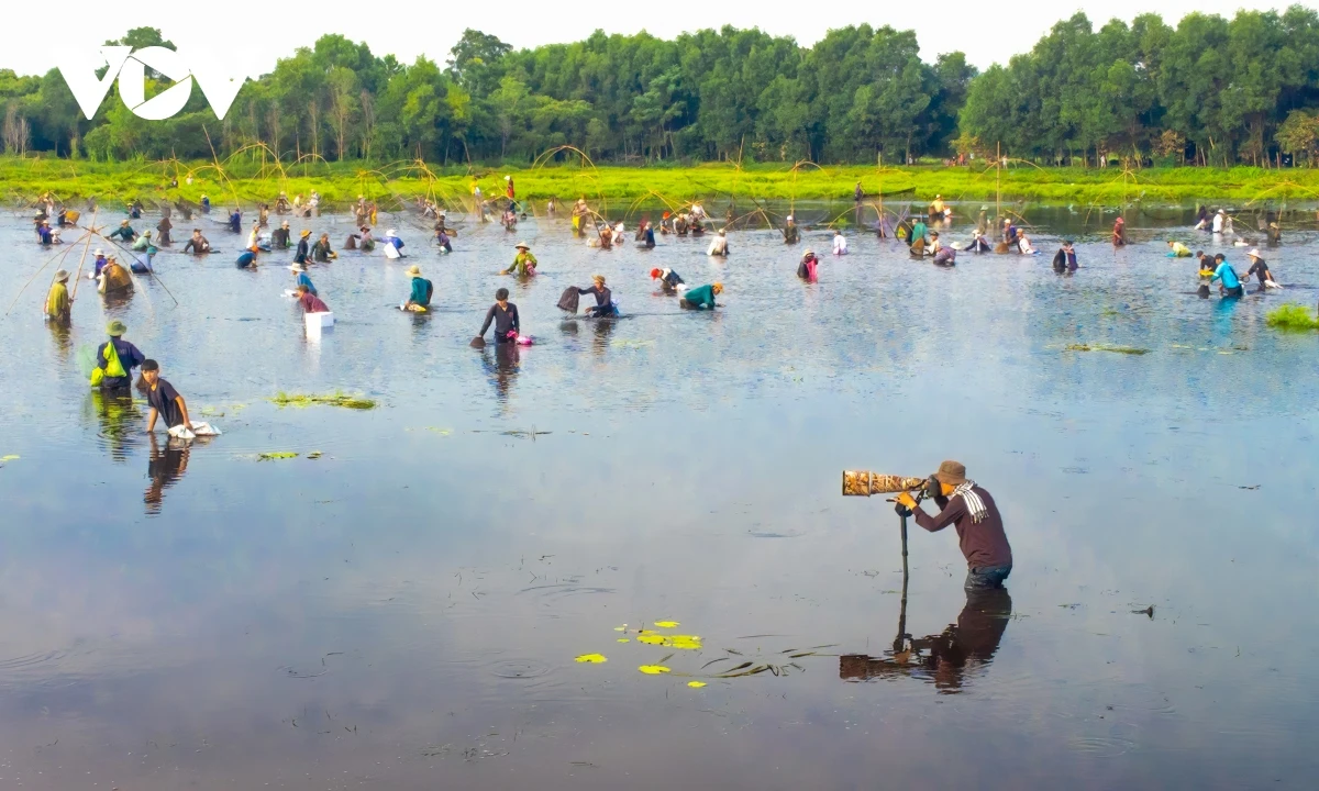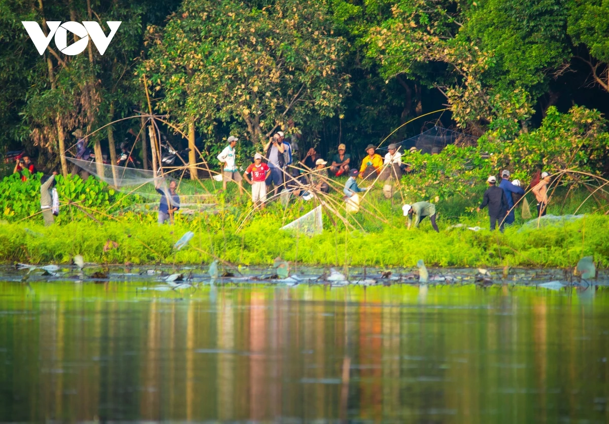 Sau phần lễ và ba hồi trống thì người dân, du khách được dùng các ngư cụ truyền thống như: nơm, rớ, rập… (tuyệt đối không dùng kích điện, vật sắc nhọn) để xuống trằm bắt cá.