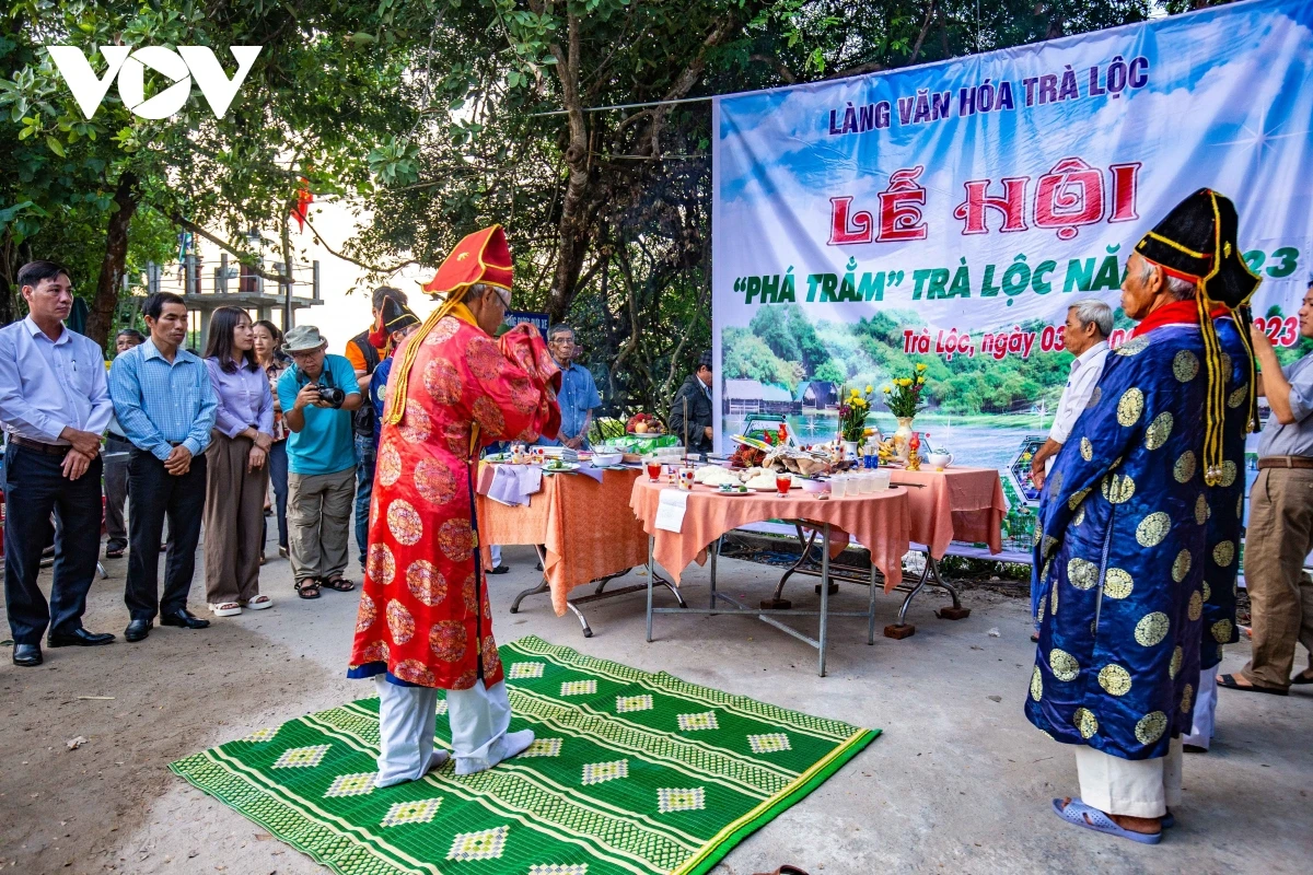 Các vị chức sắc của làng làm lễ cúng trước khi phá trằm.