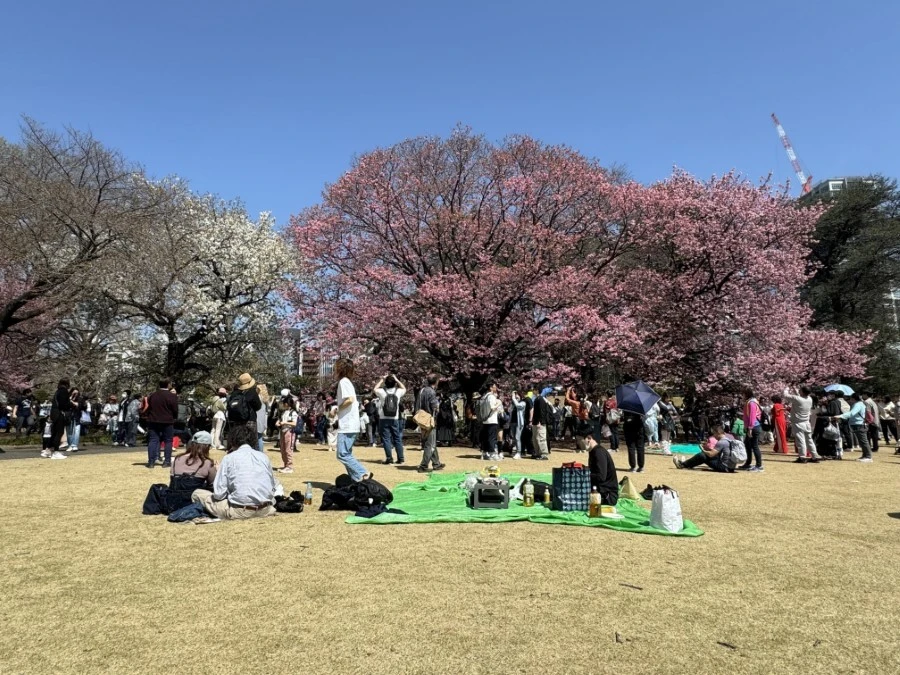 Du khách đến chiêm ngưỡng hoa anh đào tại Công viên Quốc gia Shinjuku Gyoen ở Thủ đô Tokyo (Nhật Bản).