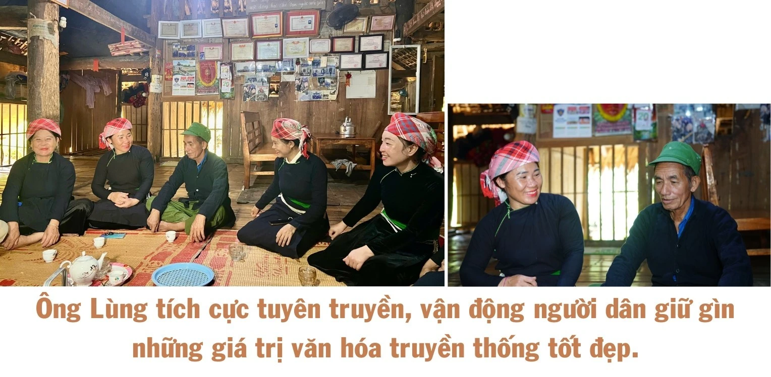 Ông Lương Văn Lùng (thôn Nhuần 2) là người có uy tín trong cộng đồng người Tày. Suốt nhiều năm qua, ông cùng chính quyền địa phương tuyên truyền, vận động người dân giữ gìn những giá trị văn hóa truyền thống tốt đẹp như nếp nhà sàn, điệu hát Then, lễ hội, trang phục, phong tục, tập quán… Ngoài công tác dân vận, ông Lùng và người thân trong gia đình cũng tích cực bảo tồn và phát huy bản sắc dân tộc mình.