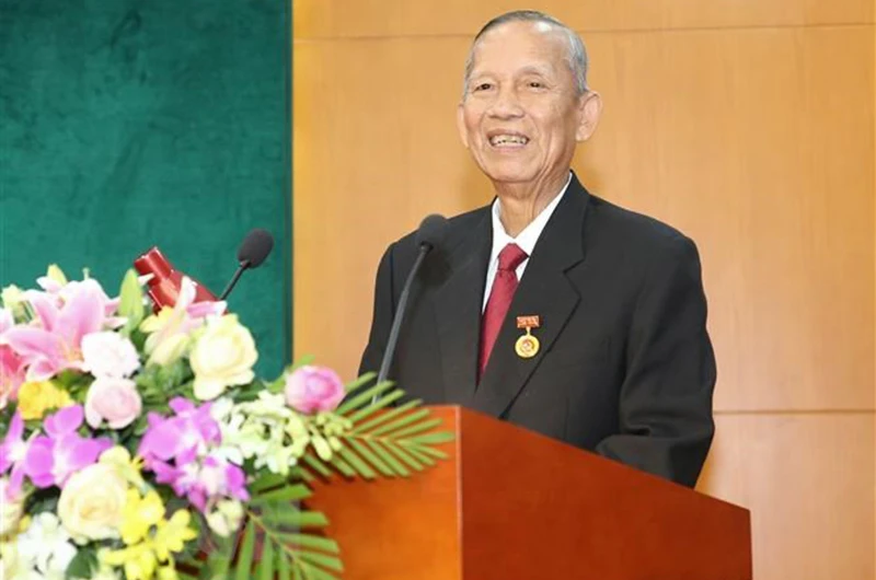Nguyên Phó Thủ tướng Trương Vĩnh Trọng nhận huy hiệu 50 năm tuổi Đảng.