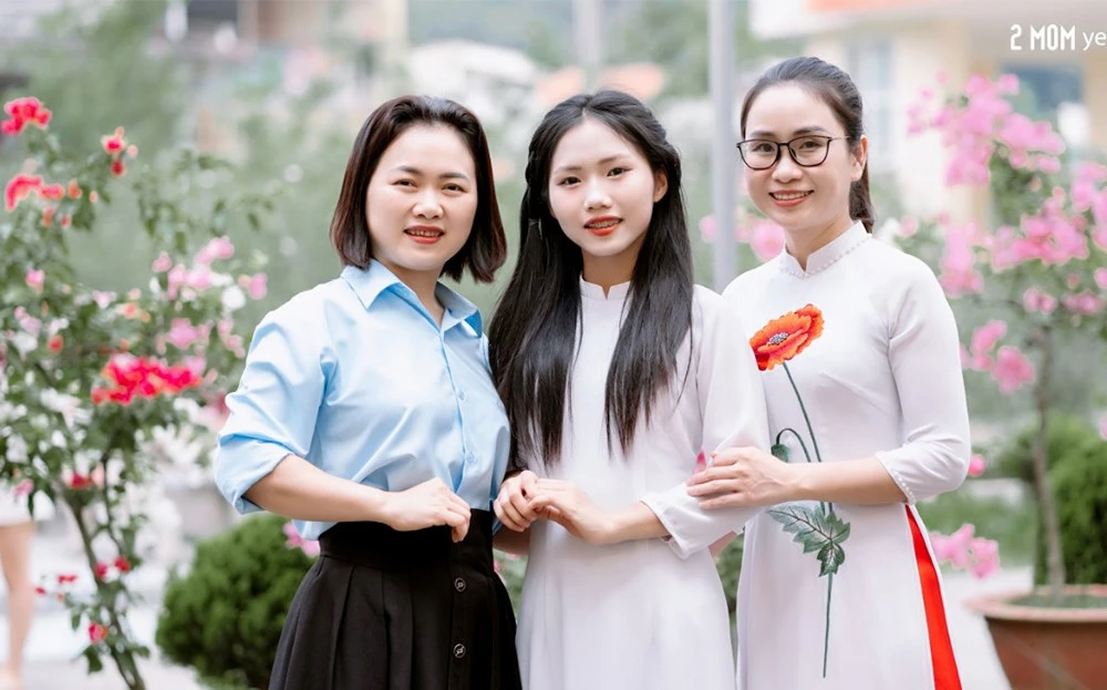 Tân thủ khoa lớp 10 Trường THPT Chuyên Nguyễn Tất Thành năm học 2024 - 2025 bên Mẹ và cô giáo chủ nhiệm lớp 9D, Trường THCS Quang Trung.