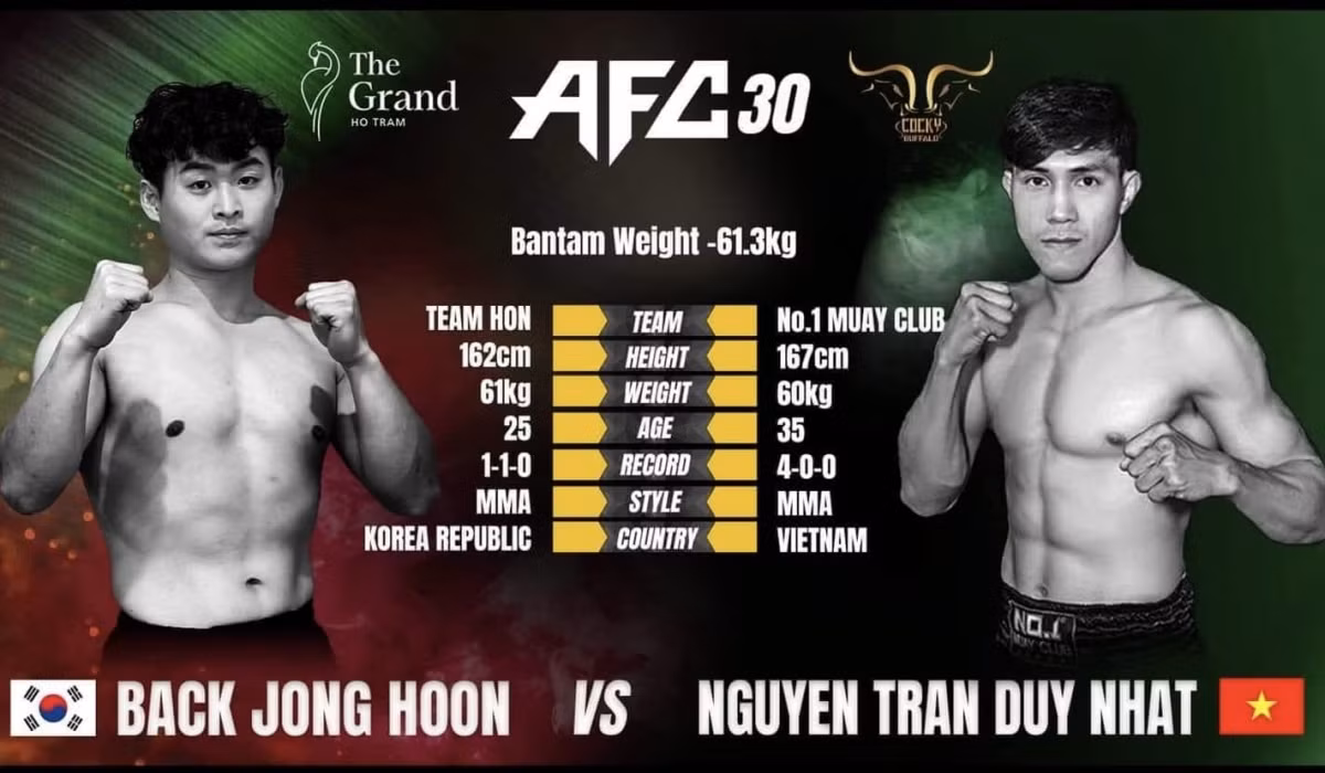 Bên cạnh Duy Nhất, 2 võ sĩ khác của Việt Nam là Mùi Trọng Vinh và Lưu Đức Mạnh cũng sẽ góp mặt tại AFC 30.