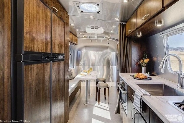 Nội thất đơn giản nhưng hiện đại bên trong xe. Ảnh: Timeless Travel Trailers