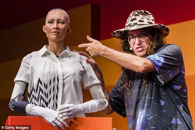 Nhà khoa học Goertzel (phải) và robot Sophia (trái).
