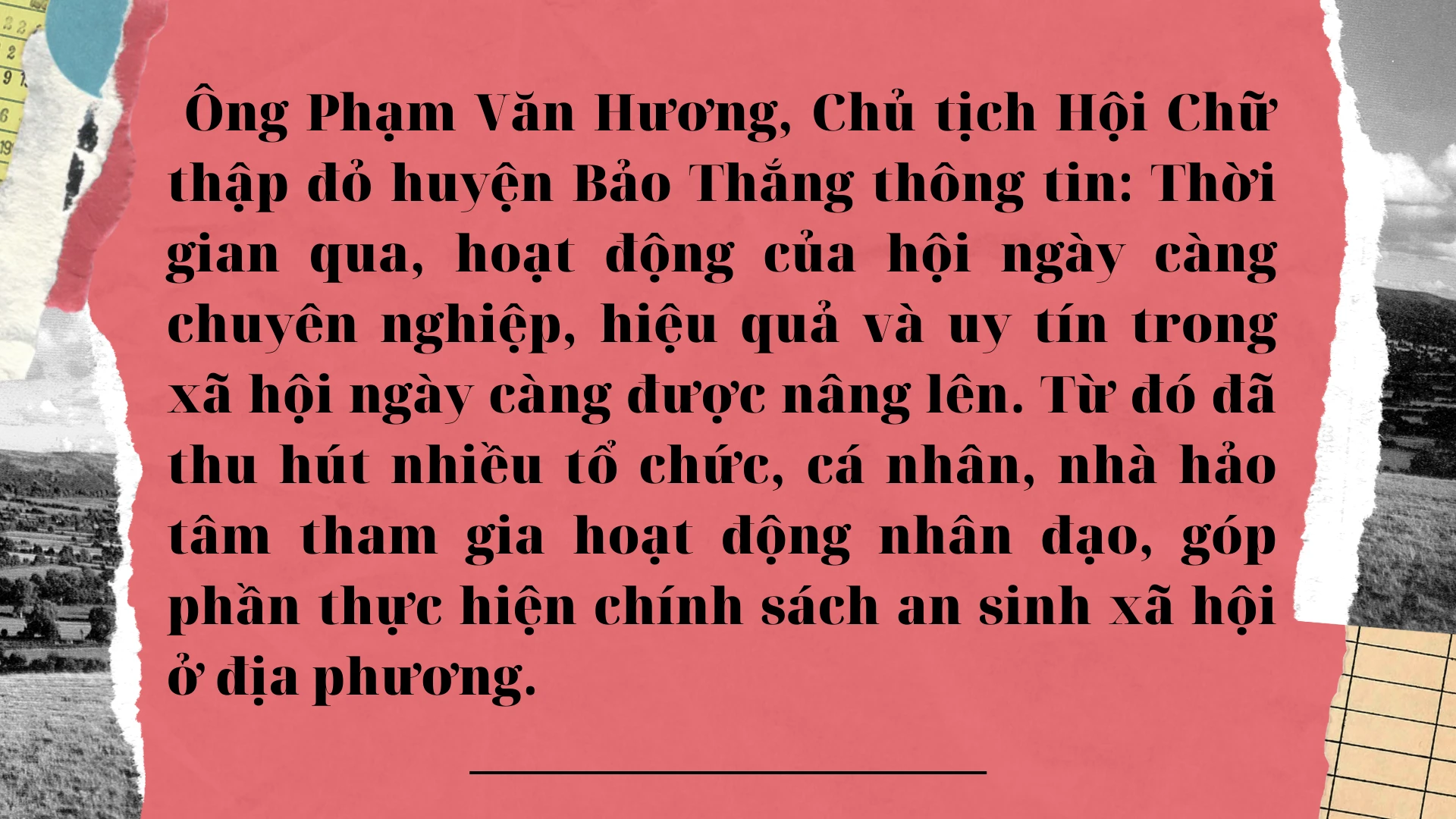 | Hội Chữ thập đỏ huyện Bảo Thắng là cầu nối cho nhiều hoạt động nhân đạo trên địa bàn những năm qua. |