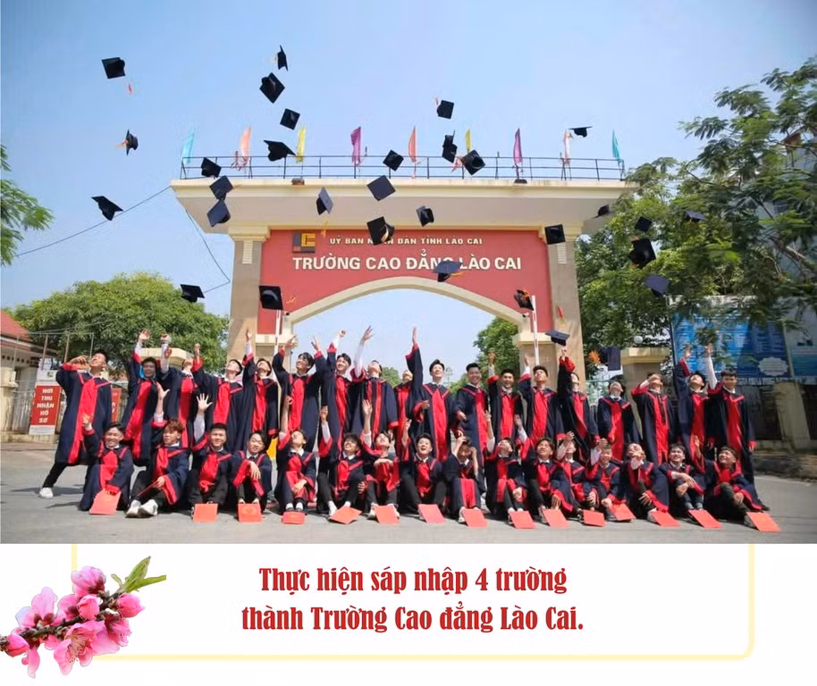 Một trong những điểm nổi bật trong công tác tinh gọn bộ máy của Lào Cai chính là sáp nhập 4 trường: Cao đẳng Cộng đồng, Cao đẳng Nghề, Trung học Y tế và một phần của Trường Cao đẳng sư phạm thành Trường Cao đẳng Lào Cai. Sau khi rà soát, xây dựng đề án, Lào Cai xác định các trường có 27 nhiệm vụ tương đồng, trùng lặp (trong tổng số 48 nhiệm vụ). Khi bắt đầu triển khai gặp rất nhiều khó khăn, chịu áp lực rất lớn. Sau sáp nhập (từ tháng 1/2019) giảm được 3 đầu mối cấp trường (3 lãnh đạo), 11 đầu mối cấp phòng (30 cán bộ quản lý), 31 biên chế, 66 người hưởng lương từ ngân sách, giảm chi thường xuyên từ ngân sách 9,5 tỷ đồng/năm, ngoài ra, diện tích đất sử dụng giảm hơn 20 ha, giảm hơn 14.000 m2 sàn xây dựng. Đến nay, Trường Cao đẳng Lào Cai đã hoạt động rất hiệu quả, trở thành 1 trong 70 trường dạy nghề được Thủ tướng Chính phủ lựa chọn đầu tư trở thành trường chất lượng cao giai đoạn 2020 - 2025; tuyển sinh ở địa bàn 13 tỉnh khu vực phía Bắc, đội ngũ cán bộ, nhà giáo được đào tạo, bồi dưỡng nâng cao chất lượng về mọi mặt, cơ bản đều phấn khởi, yên tâm công tác, cống hiến.