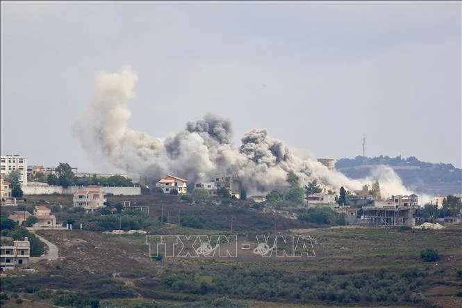 Khói bốc lên sau cuộc không kích của Israel xuống khu vực Tayr Harfa, Liban, ngày 24/7/2024.