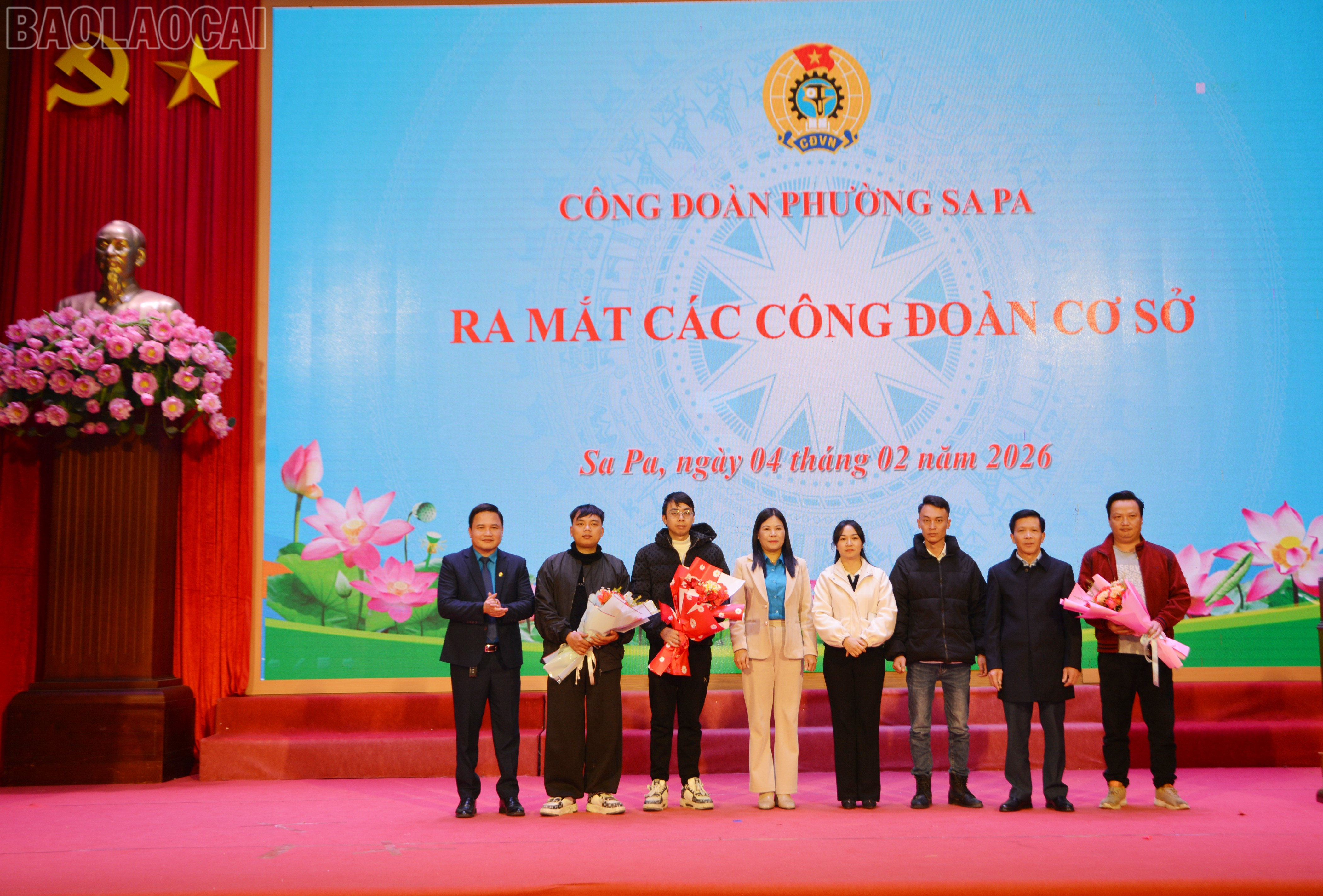 Dịp này, Công đoàn phường Sa Pa tổ chức ra mắt 3 công đoàn cơ sở mới được thành lập, gồm: Công đoàn cơ sở Khách sạn Joville Sa Pa; Công đoàn cơ sở Hợp tác xã Làng Thổ cẩm Lan Rừng và Nghiệp đoàn cơ sở Shipper Bình An (ảnh trên).