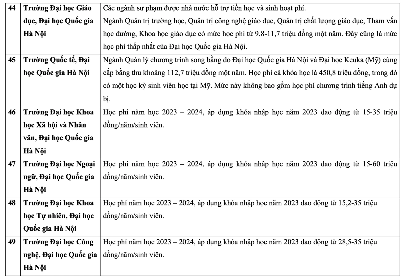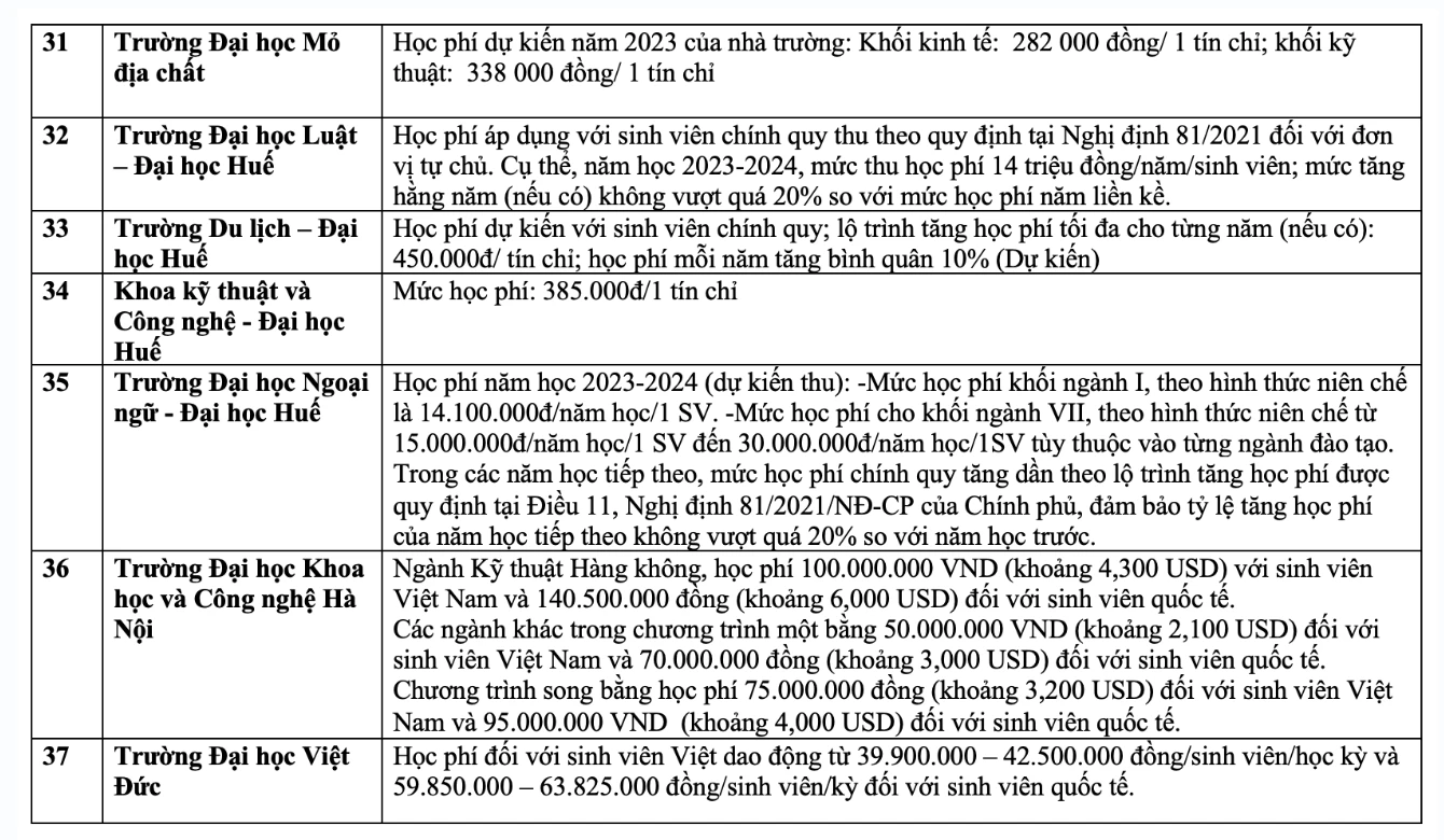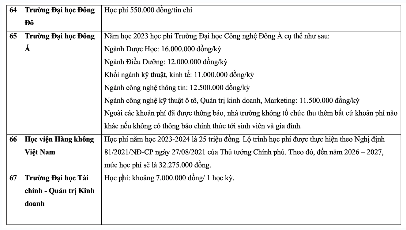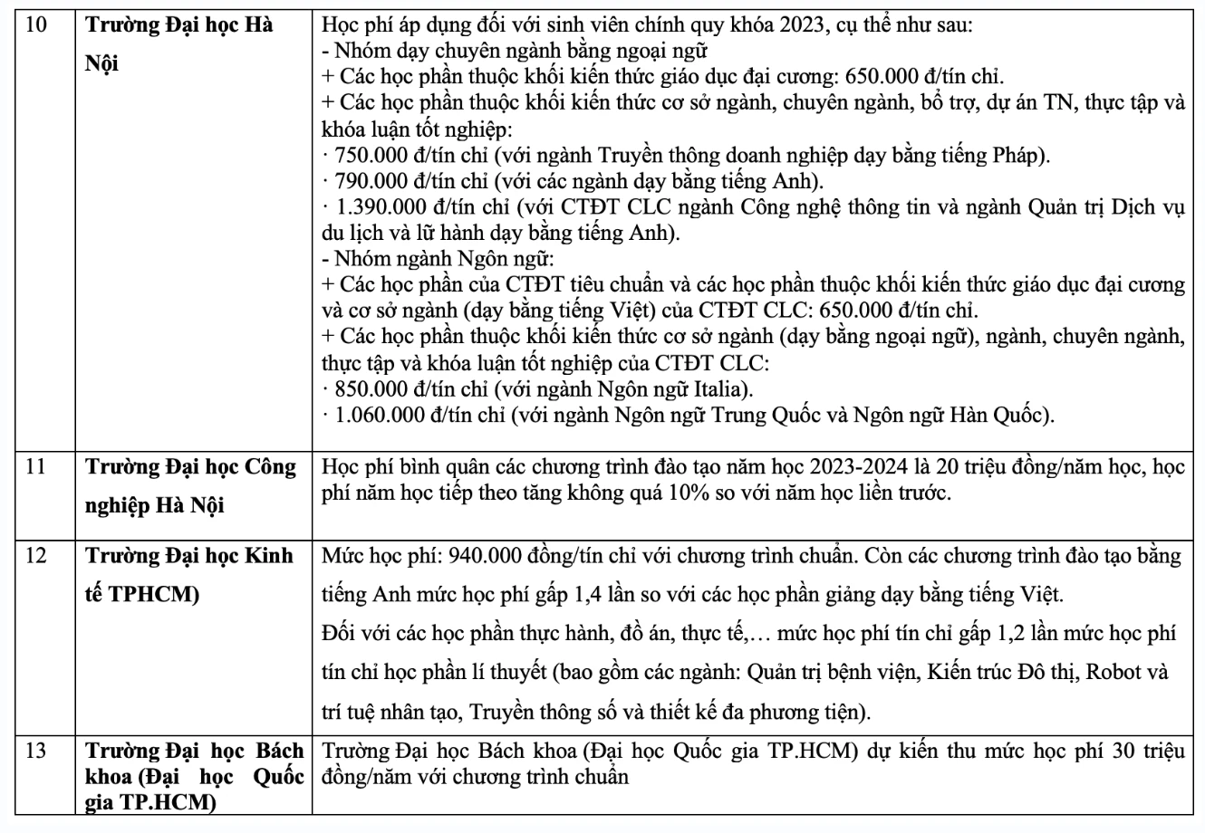 Chi tiết học phí các trường đại học năm 2023 như sau: