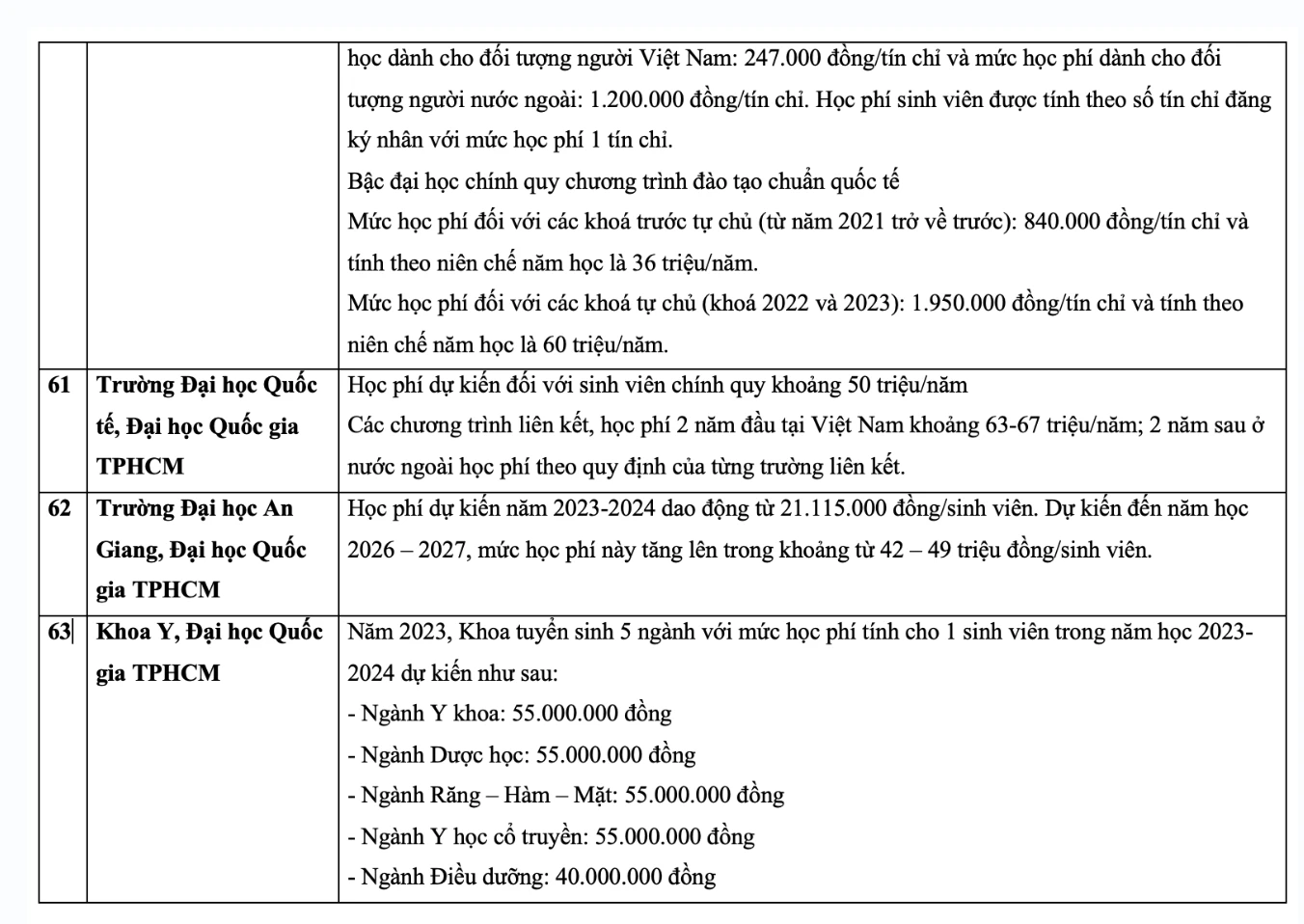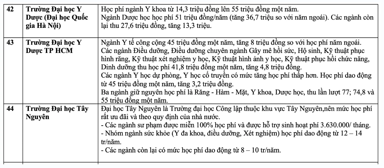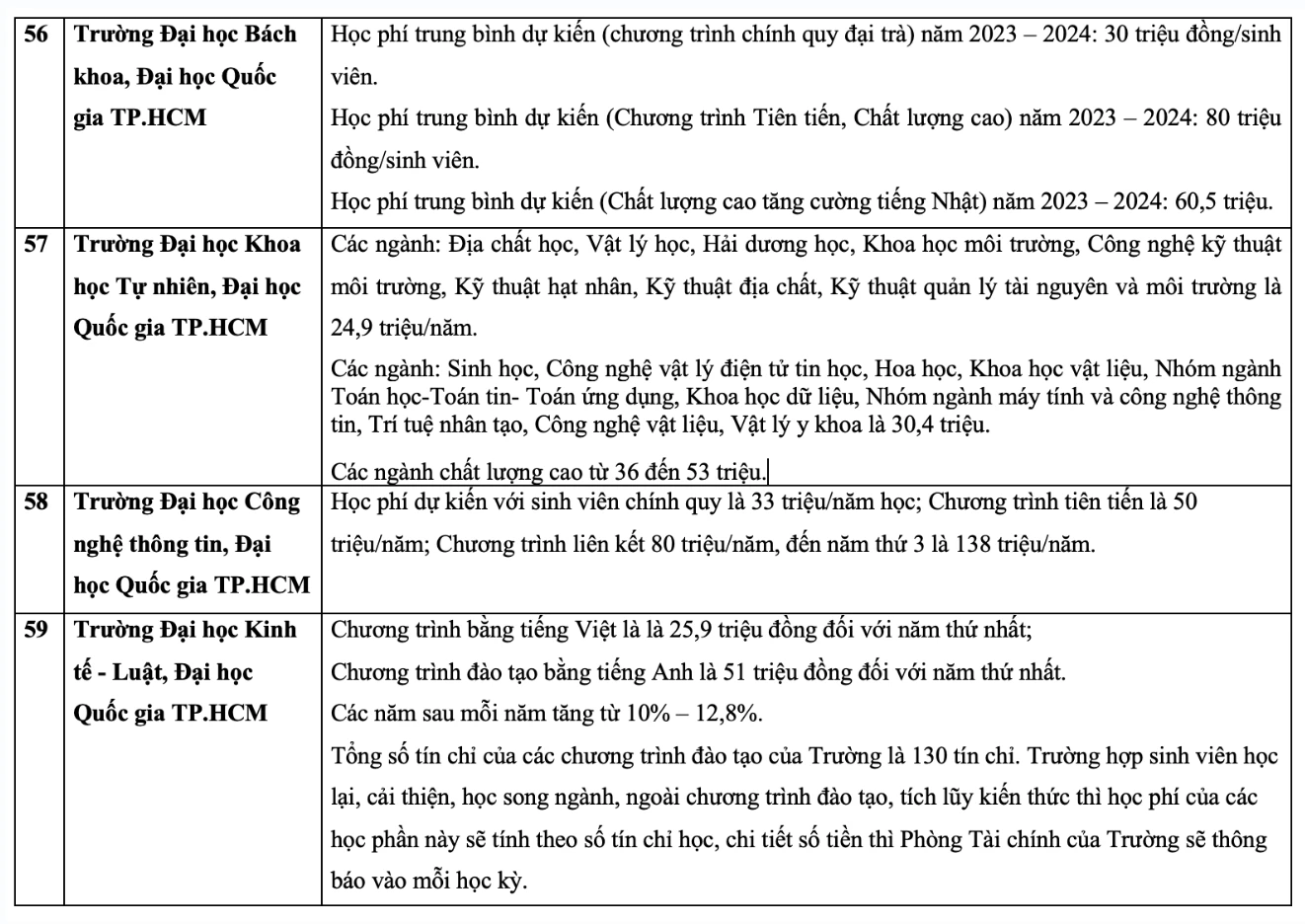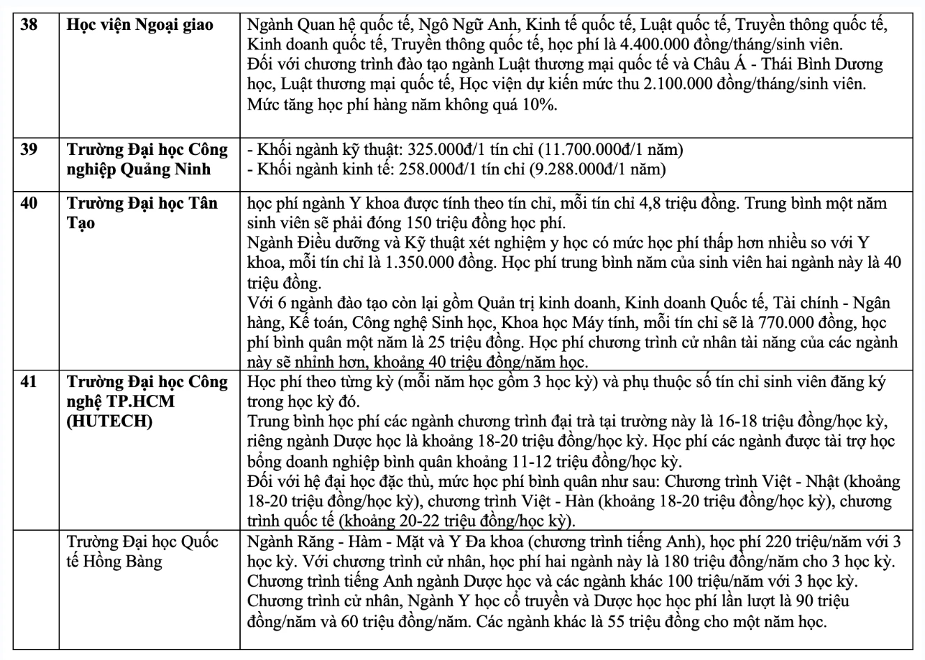 Chi tiết học phí các trường đại học năm 2023 như sau: