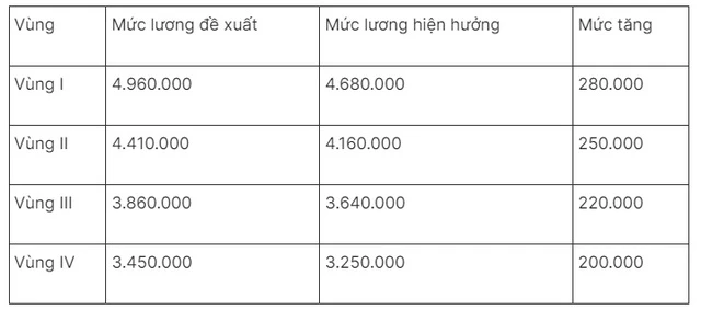 Cụ thể, mức đề xuất tối thiểu vùng như sau: