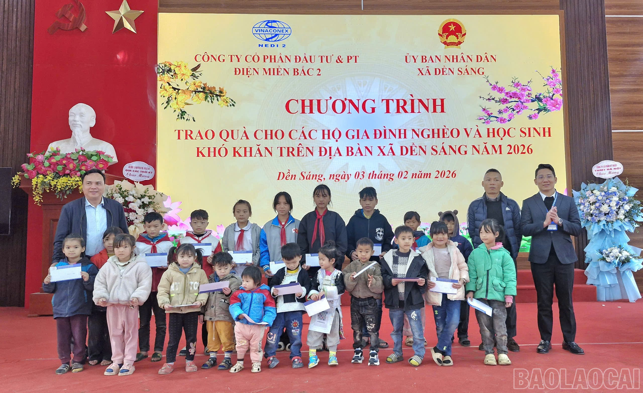 Ngày 3/2/2026, tại xã Dền Sáng, Công ty cổ phần Đầu tư và Phát triển Điện Miền Bắc 2 đã tổ chức chương trình tặng quà Tết cho các hộ nghèo và học sinh có hoàn cảnh khó khăn trên địa bàn xã.