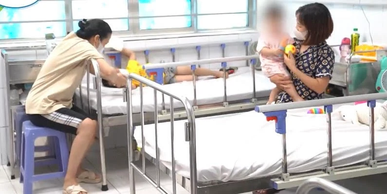 Bé A.N (26 tháng, Bắc Giang) bị sốt cao không hạ, xuất hiện nhiều nốt ban đỏ ở tay, chân và miệng, hay giật mình, nên được mẹ đưa tới Bệnh viện Nhi Trung ương khám và được chẩn đoán mắc tay chân miệng, đã có biến chứng viêm não.