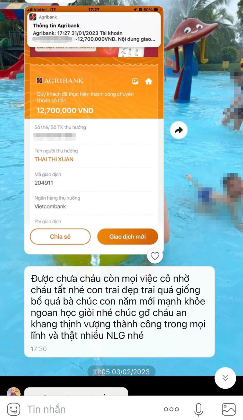 Số tiền 12,7 triệu đồng (một nửa tổng chi phí) mẹ chị Hà chuyển khoản tới tài khoản Thái Thị Xuân cho lớp học ở Thái Lan hồi tháng 2/2023.
