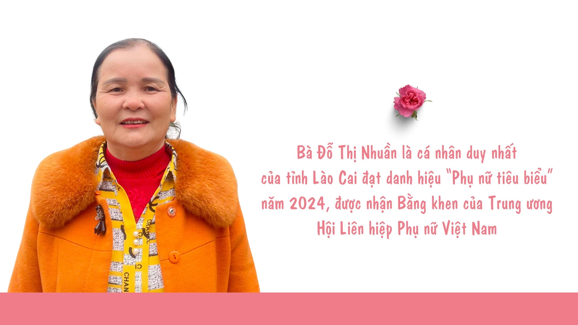 Năm nay, bà Đỗ Thị Nhuần (tổ dân phố số 2, phường Duyên Hải, thành phố Lào Cai) đón tết trong niềm vui, phấn khởi hơn mọi năm. Trước tết Nguyên đán ít ngày, bà vinh dự là cá nhân duy nhất của tỉnh Lào Cai đạt danh hiệu “Phụ nữ tiêu biểu” năm 2024, được nhận Bằng khen của Trung ương Hội Liên hiệp Phụ nữ Việt Nam và tiếp tục tái cử Bí thư Chi bộ Kim Thành 2, nhiệm kỳ 2025 - 2027.