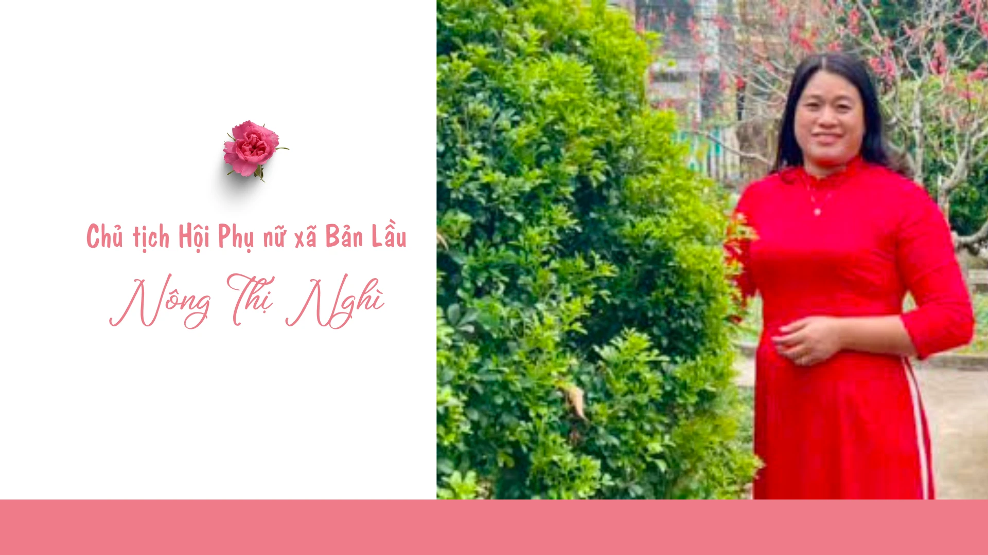 Chị Nông Thị Nghì sinh ra trong gia đình người Nùng ở xã Bản Sen, sau khi lập gia đình, chị gắn bó với xã Bản Lầu. Với sự nhiệt tình, sôi nổi, tháo vát trong công tác hội, chị Nghì được chị em yêu mến, tin tưởng.