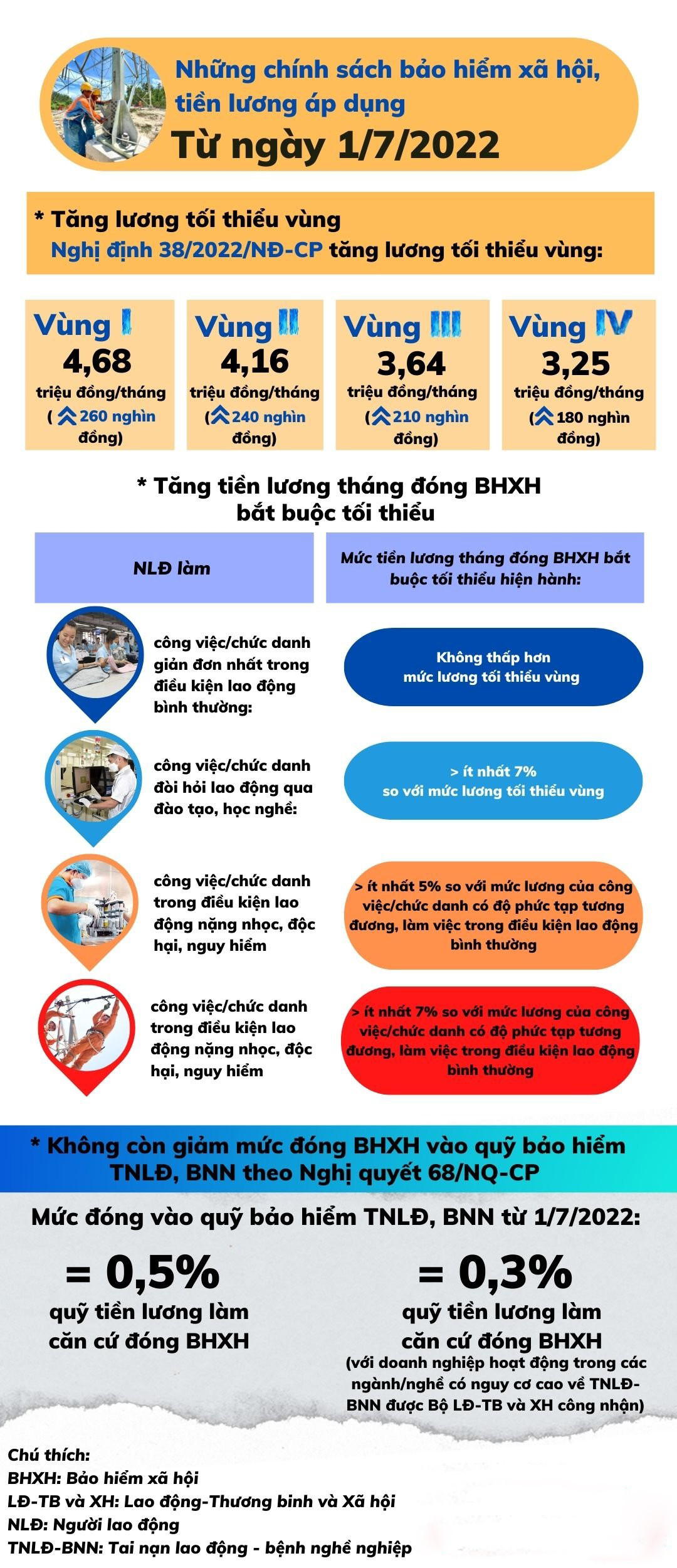 Từ ngày 1/7/2022, người lao động và người sử dụng lao động cần biết về việc điều chỉnh 3 chính sách về bảo hiểm xã hội, tiền lương.