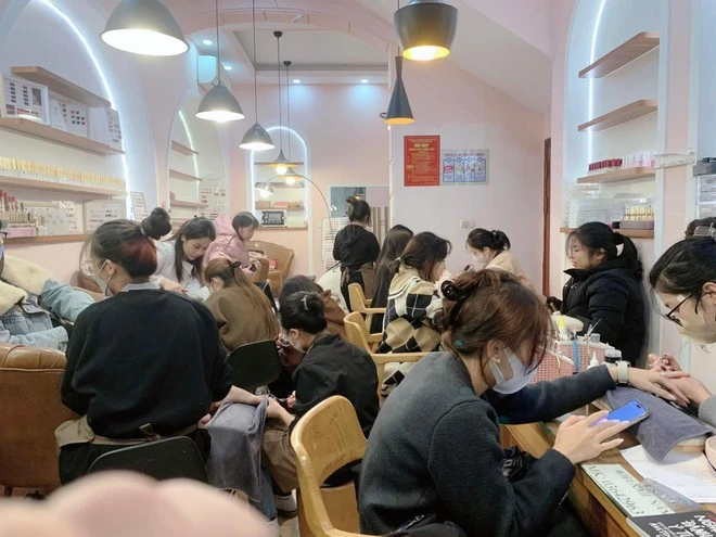 Tương tự, ngày cuối tuần, cơ sở làm nail tại Xuân La (Tây Hồ) quá tải vì nhu cầu của khách hàng tăng cao. Chủ cửa hàng chia sẻ, nhiều thời điểm cửa hàng phải ngừng nhận khách hàng mới. Để nhanh gọn, tiết kiệm thời gian nhân viên thường tư vấn khách những mẫu nail box tự gắn, khách chỉ cần gửi trước kích cỡ tay và mẫu, khi làm xong khách chỉ cần mang về nhà tự gắn.