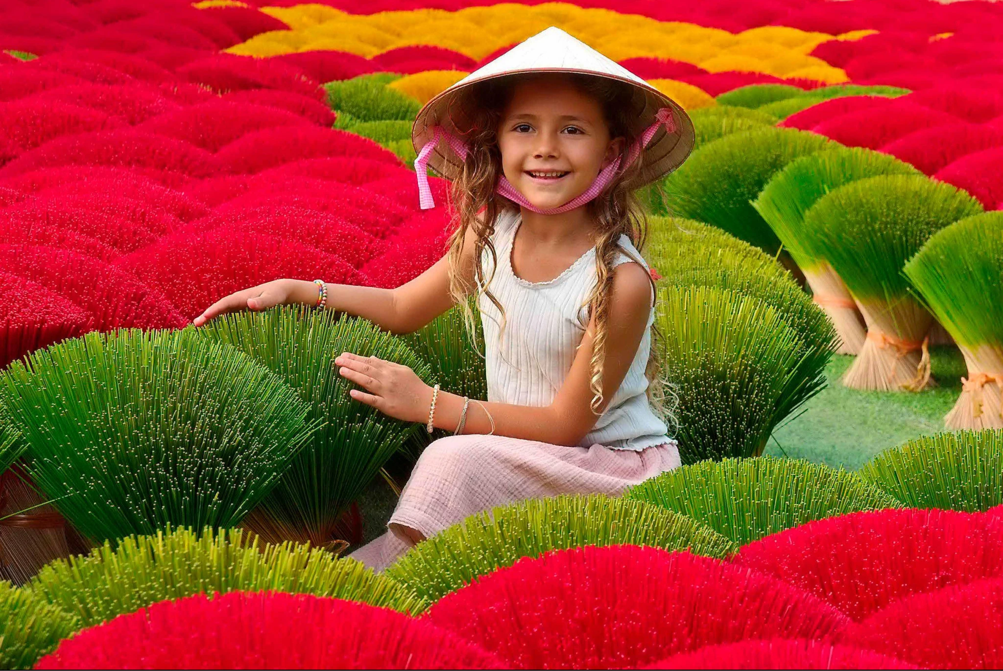 Khách du lịch nhí thăm làng nghề làm hương, tác giả Lê Thị Bạch Tuyết.