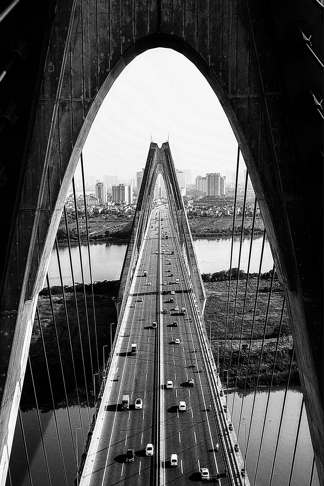 Có những công trình đã quen nhưng được tác giả Phạm Văn Thắng thể hiện với góc nhìn mới qua bức ảnh trắng đen: Cầu Nhật Tân (huy chương đồng). Ảnh chụp bằng flycam qua trụ tháp hình thoi đã tạo được ấn tượng mạnh về kiến trúc của cây cầu dây văng bắc qua sông Hồng.