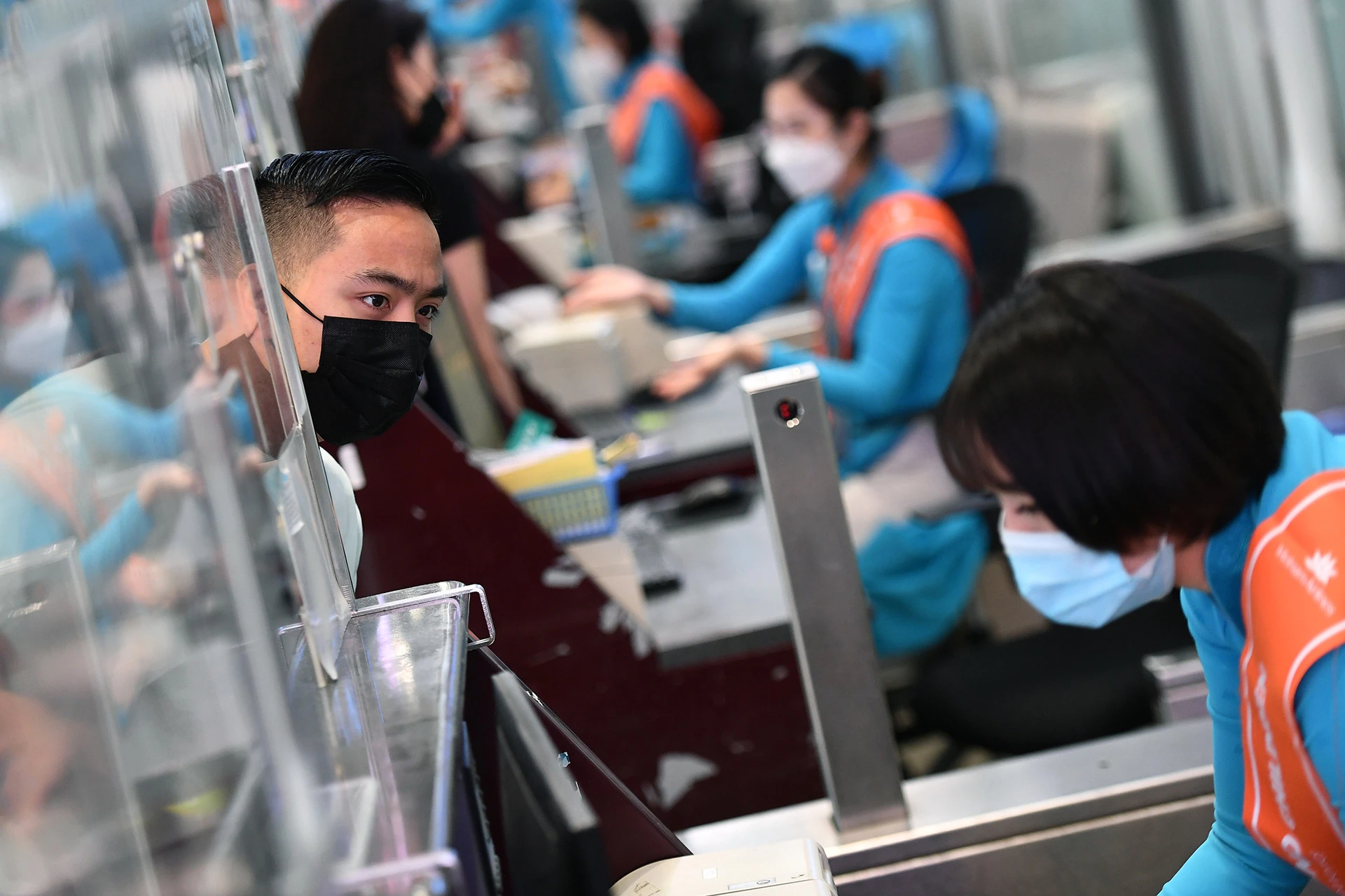 Hành khách làm thủ tục tại sân bay Nội Bài.