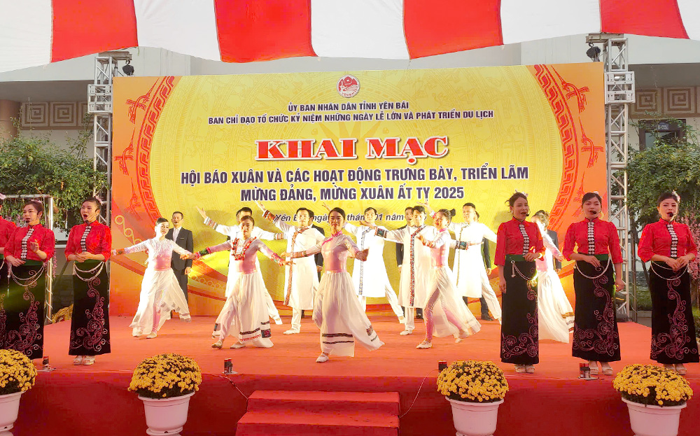 Tiết mục biểu diễn của các nghệ sĩ Trung tâm Văn hóa Nghệ thuật tỉnh Yên Bái tại Hội Báo Xuân năm 2025.