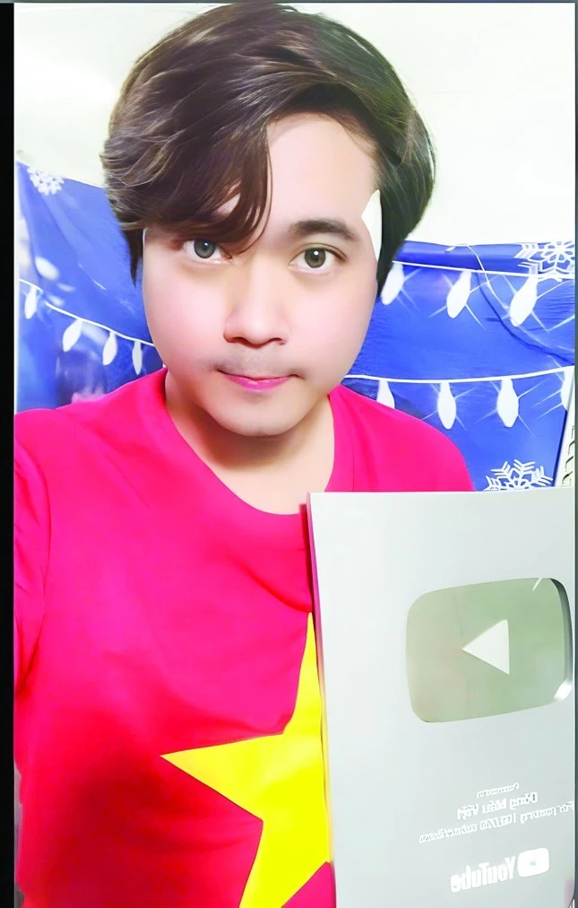 Anh Phạm Huy Hoàng, kênh Dòng Máu Việt chụp ảnh cùng nút bạc YouTube