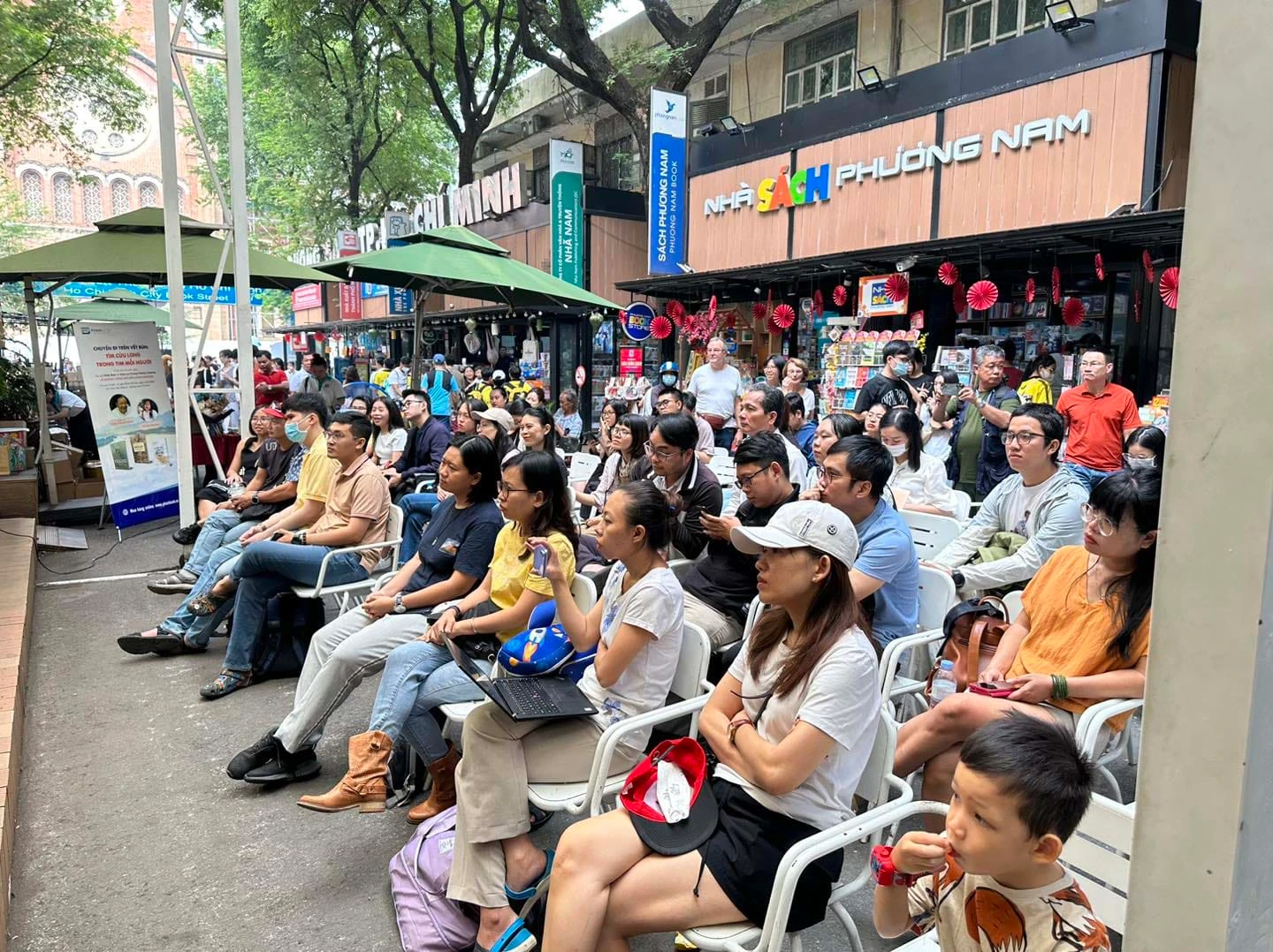 Đông đảo khán giả quan tâm đến buổi trò chuyện.