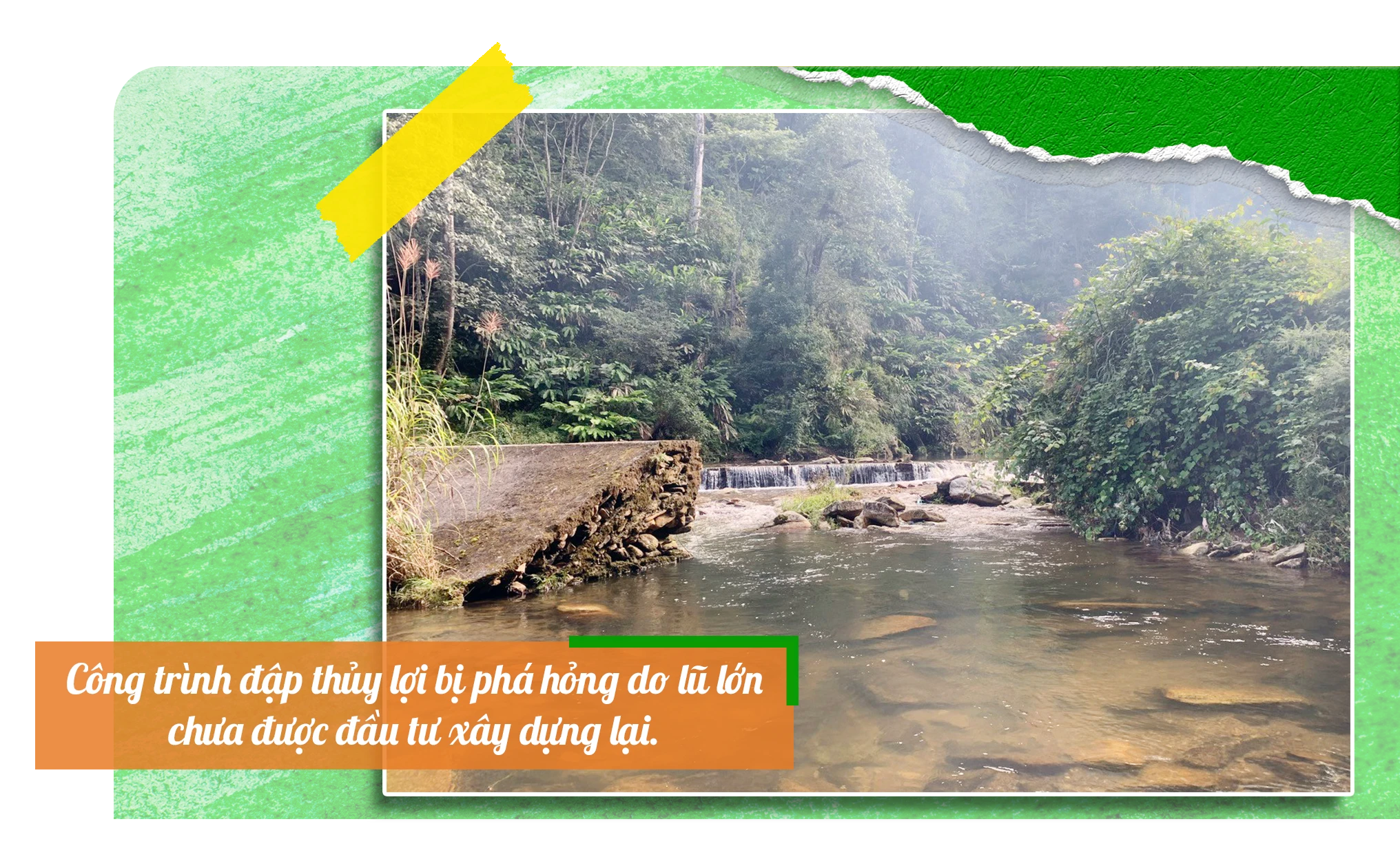 Dẫn chúng tôi đi khảo sát hồ Khuổi Rịa, ông Lý Văn Nội, Chủ tịch UBND xã Nghĩa Đô lo lắng chia sẻ: Trận lũ lịch sử tháng 9/2024 đã khiến đập của hồ bị cuốn trôi. Do khối lượng sửa chữa rất lớn nên đến nay, công tác lập phương án khắc phục vẫn chưa xong. Hiện, hơn 20 ha lúa xuân của xã đang phải phụ thuộc nước mưa và lấy từ công trình khác về tưới tiêu. Người dân trong xã mong muốn huyện sớm đẩy nhanh việc sửa chữa hồ Khuổi Rịa để ổn định nguồn nước phục vụ sản xuất.