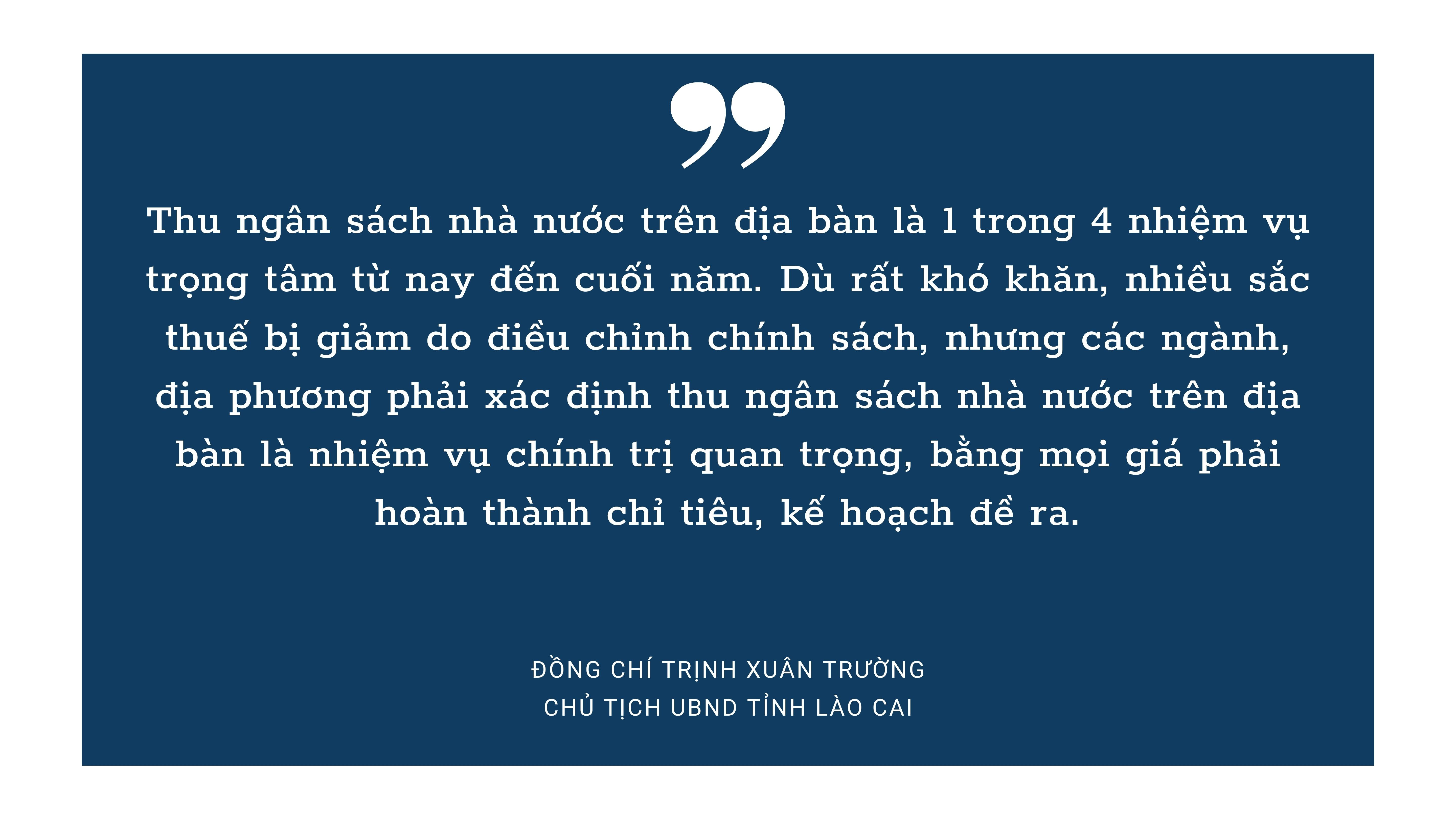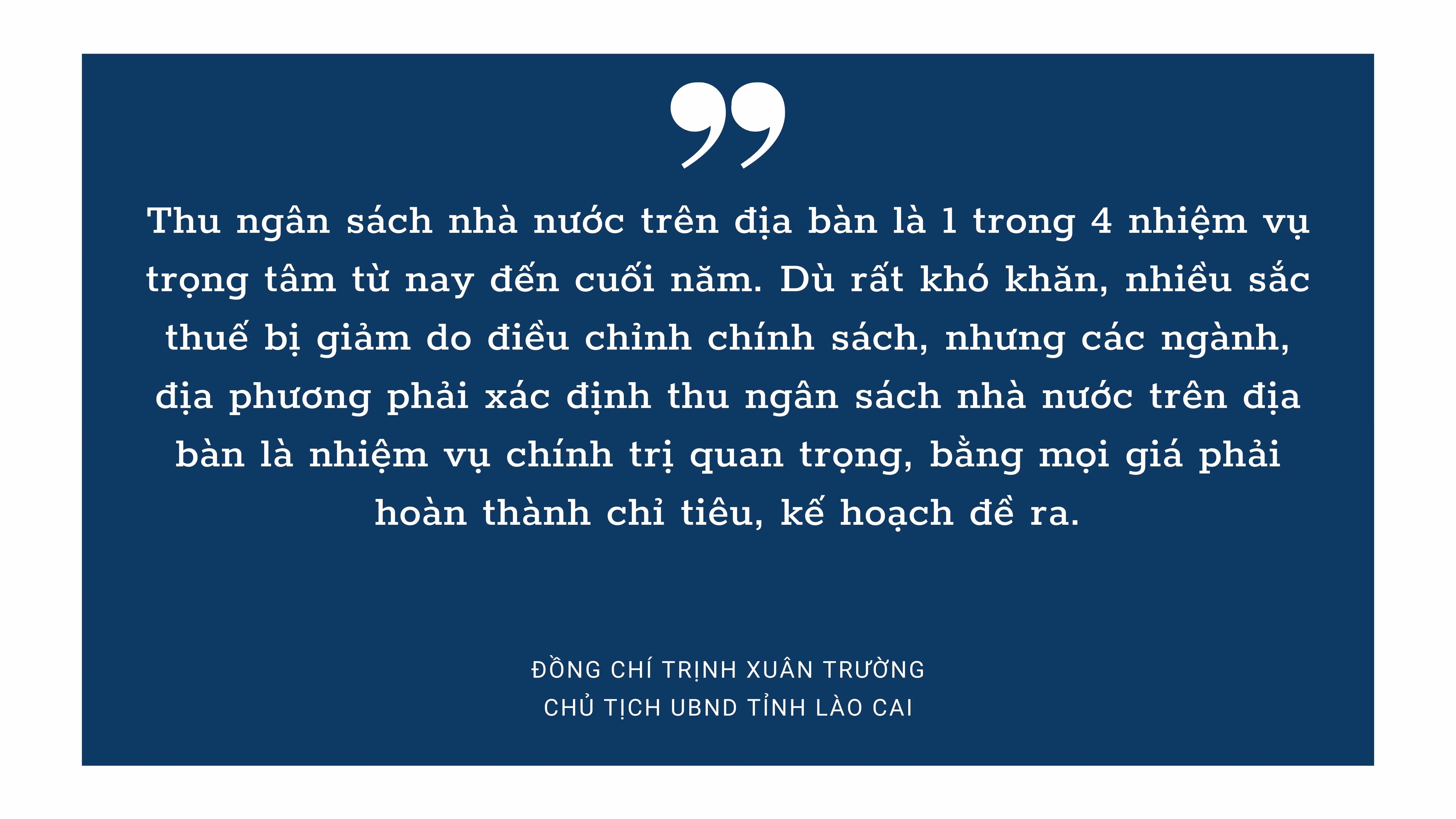 Để tổng số thu ngân sách nhà nước trên địa bàn phấn đấu đạt 11.000 tỷ đồng, trong 3 tháng cuối năm, mỗi tháng tỉnh Lào Cai phải thu hơn 1.000 tỷ đồng, vì thế cần có những giải pháp căn cơ, quyết liệt và đồng bộ từ tỉnh đến các địa phương.