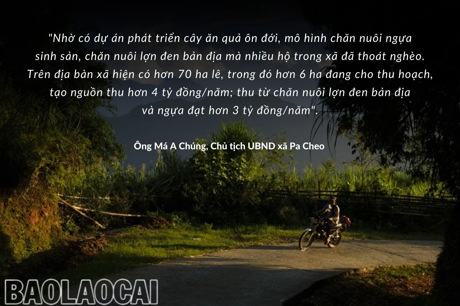 Pa Cheo là xã có tỷ lệ hộ nghèo giảm sâu nhất trong 10 xã, đạt 14,45% (từ 79,39% xuống 64,81%, tương đương giảm 167 hộ nghèo/năm). Thu nhập bình quân năm 2022 đạt 19,2 triệu đồng/người, tăng 5,2 triệu đồng/người so với năm 2020.