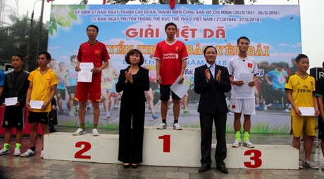 ![]() VĐV Hờ A Chú (Trường Cao đẳng nghề) giành giải nhất nam chính. | ![]() VĐV Hoàng Thị Kim Oanh (thành phố Yên Bái) giành giải nhất nữ chính. |