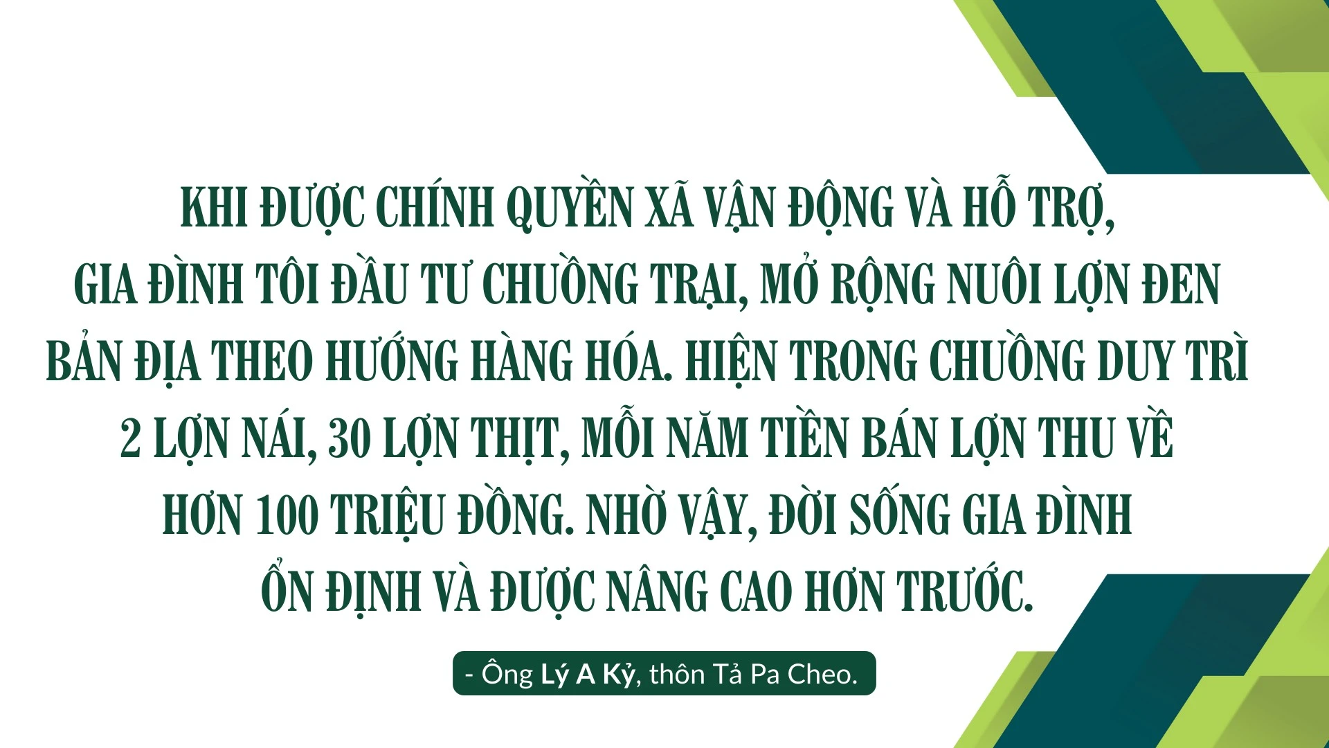 Tuy nhiên, tỷ lệ hộ nghèo của Pa Cheo vẫn còn khá cao, rất cần sự hỗ trợ của các cấp, các ngành trong triển khai các mô hình phát triển kinh tế, dạy nghề phù hợp để giúp người dân có sinh kế bền vững.