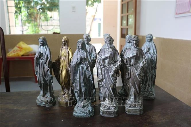 Tại cơ quan Công an, Võ Văn Kiên khai nhận, từ đầu năm 2024 đến nay, đối tượng cùng với Nguyễn Chí Tâm (33 tuổi, trú huyện Dương Minh Châu, tỉnh Tây Ninh) bàn bạc, thống nhất tìm mua các pho tượng đồng với giá từ 1 - 1,5 triệu đồng, tự chế tác thêm các chữ, số "24-12-1728"; "GOLD 14K" để ngụy tạo nguồn gốc tượng là "đồ cổ", làm bằng vàng, bạc có giá thành cao. Sau đó, các đối tượng tìm đến các cơ sở giáo xứ, nhà thờ để lừa bán lại với giá từ 15 - 20 triệu đồng/tượng.