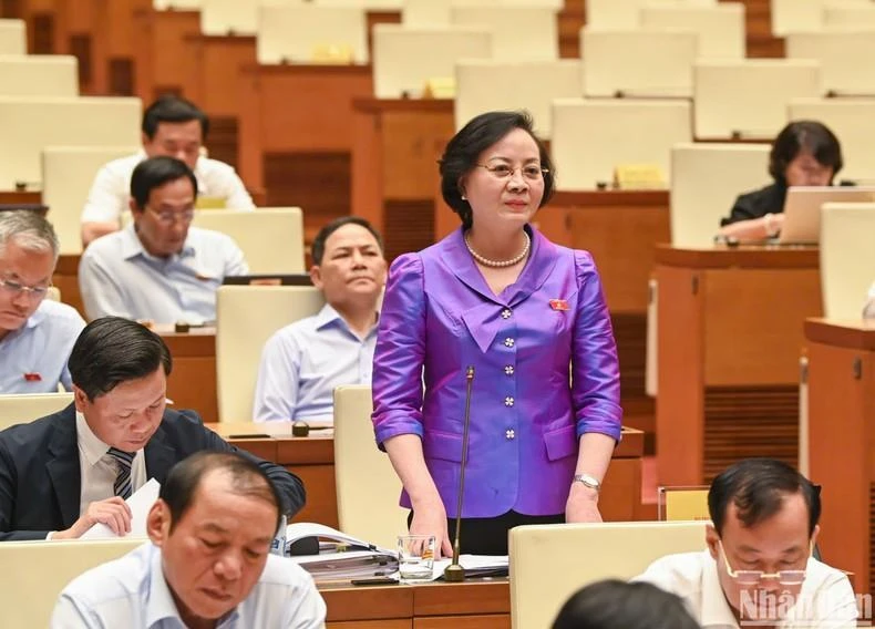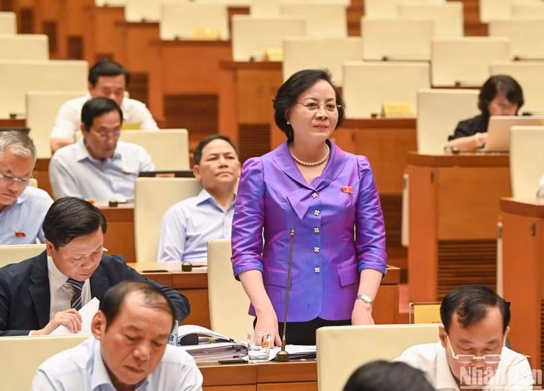 Nêu vấn đề chất vấn Bộ trưởng Nội vụ Phạm Thị Thanh Trà, đại biểu Hồ Thị Kim Ngân (đoàn Bắc Kạn) cho biết, theo báo cáo của Chính phủ, sau 4 năm kể từ ngày Nghị quyết của Ủy ban Thường vụ Quốc hội về việc sắp xếp đơn vị hành chính cấp huyện, cấp xã có hiệu lực thì vẫn còn năm 58/706 cán bộ, công chức cấp huyện; 1405/9694 cán bộ, công chức cấp xã dôi dư chưa được sắp xếp, giải quyết chế độ.