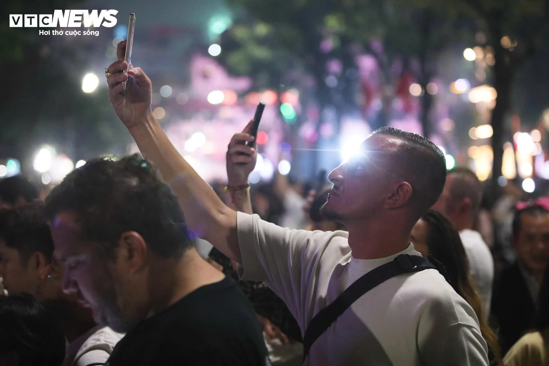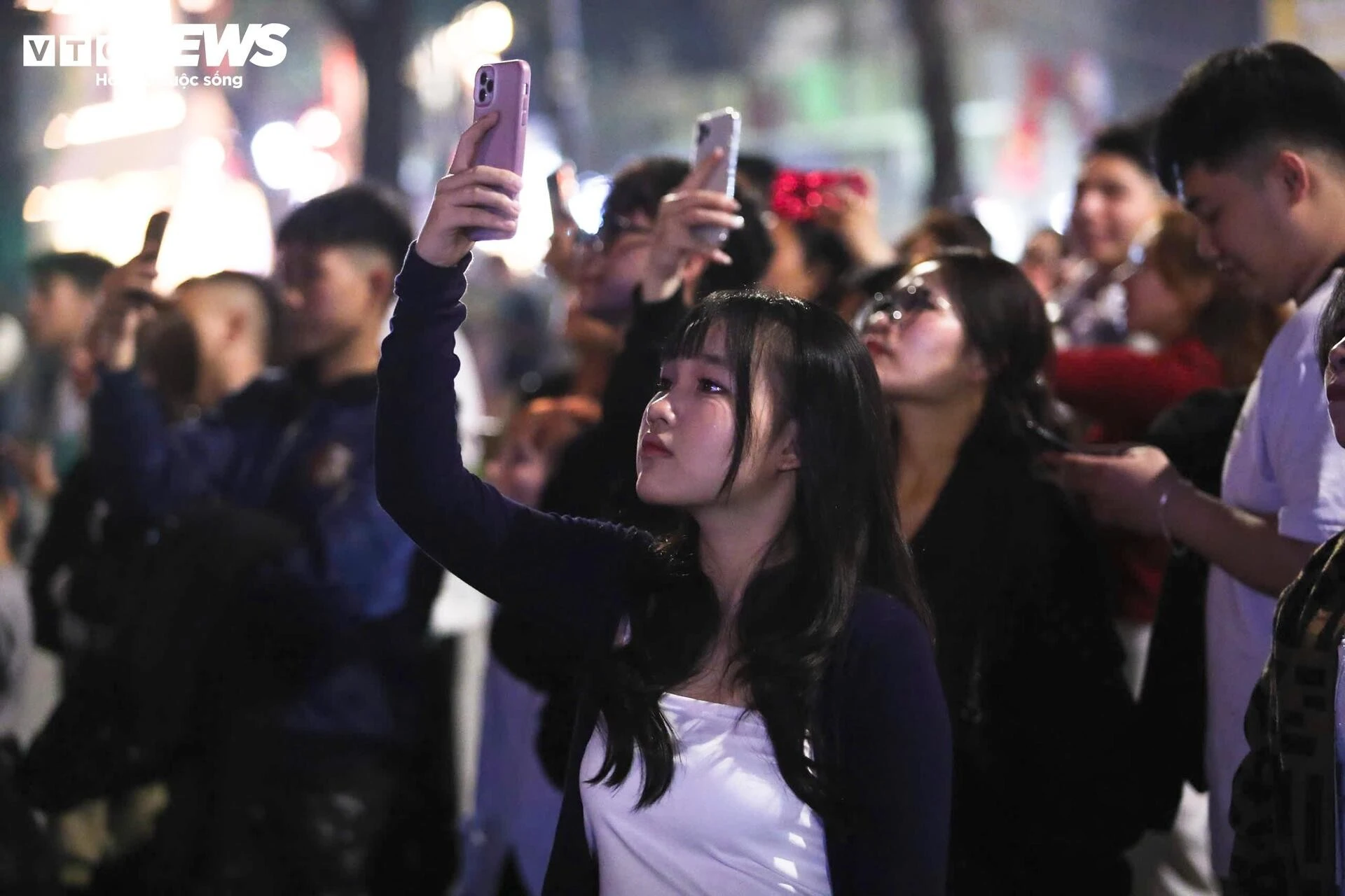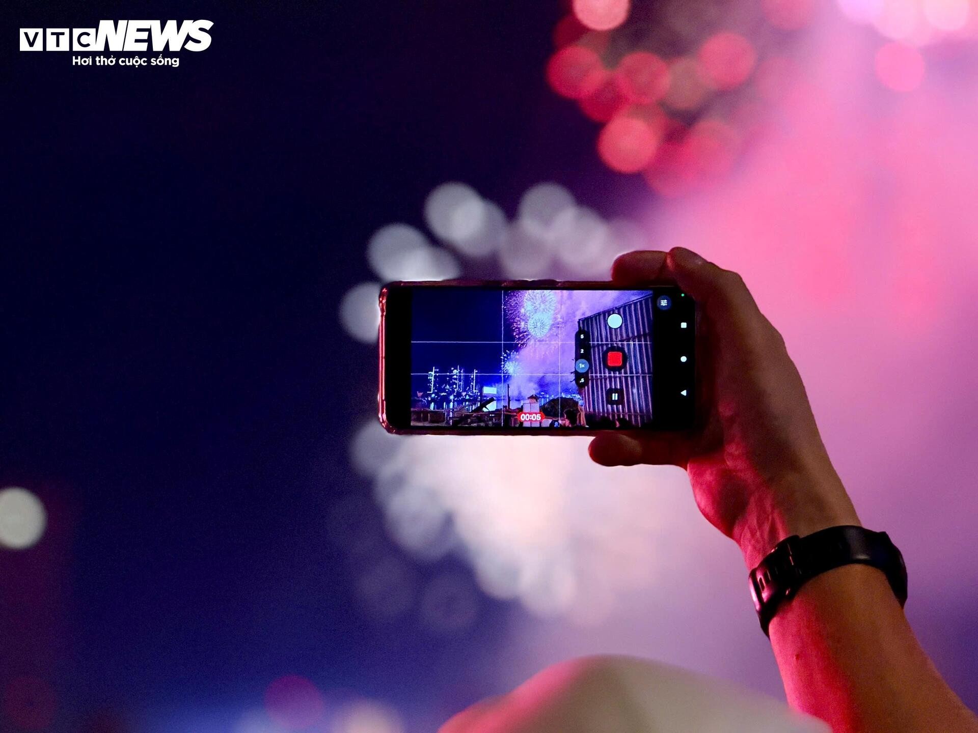 Nhiều người tranh thủ ghi lại hình ảnh ấn tượng bằng điện thoại, lưu giữ thời khắc mở đầu cho một năm mới an lành.