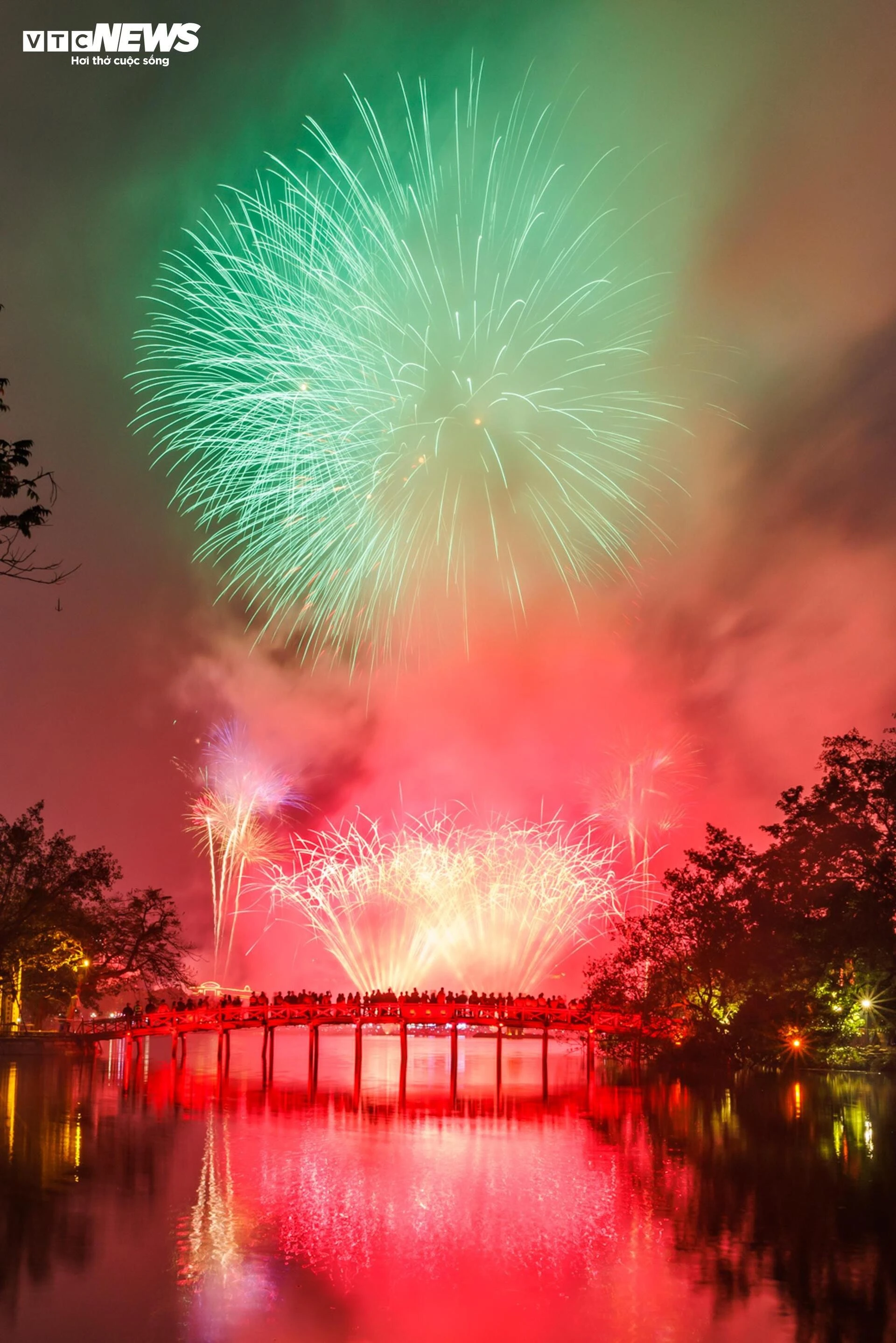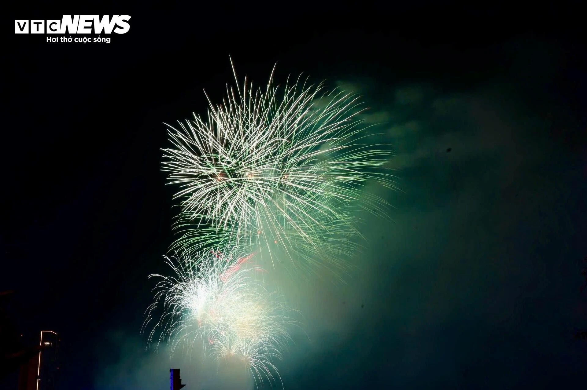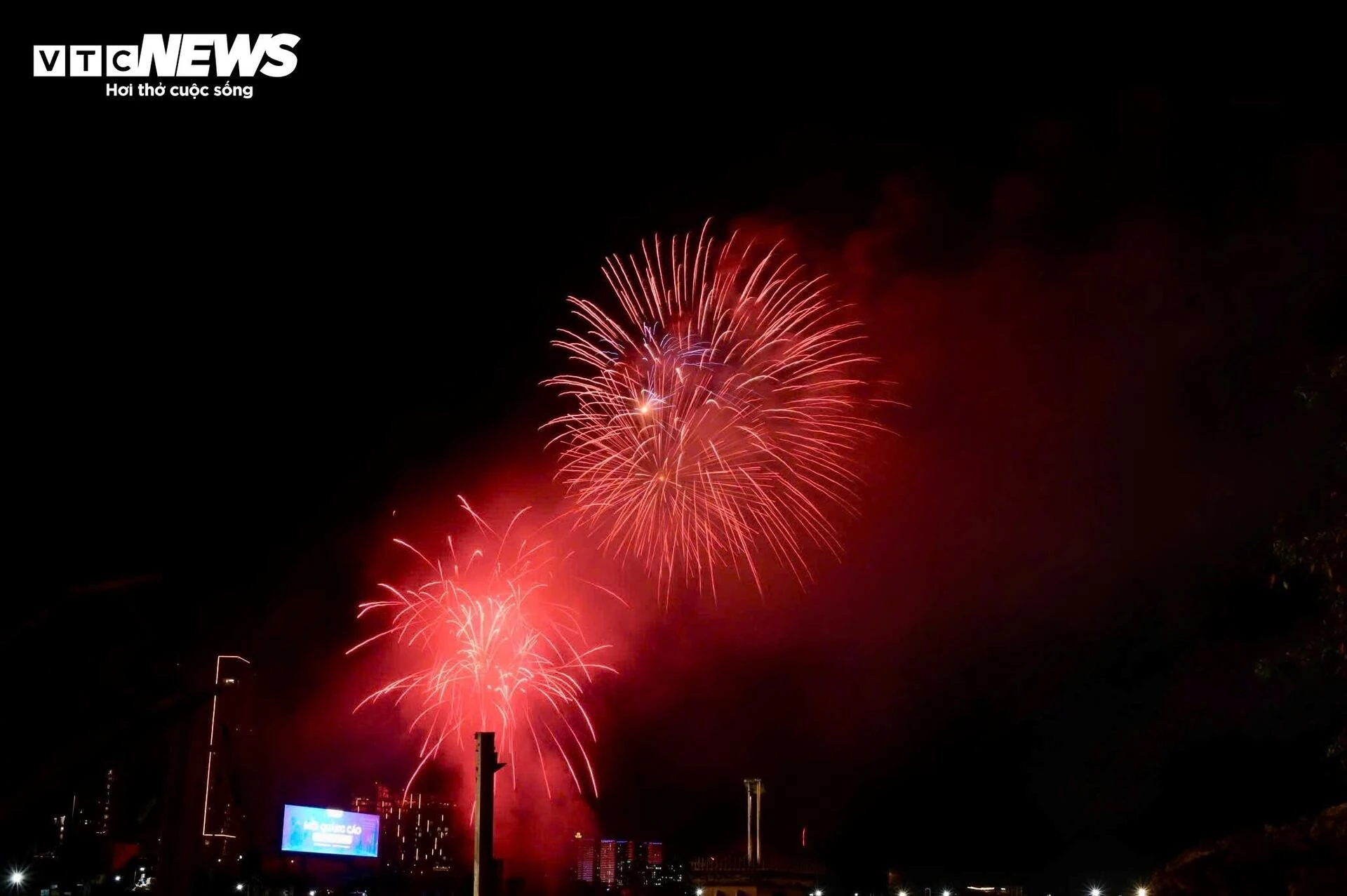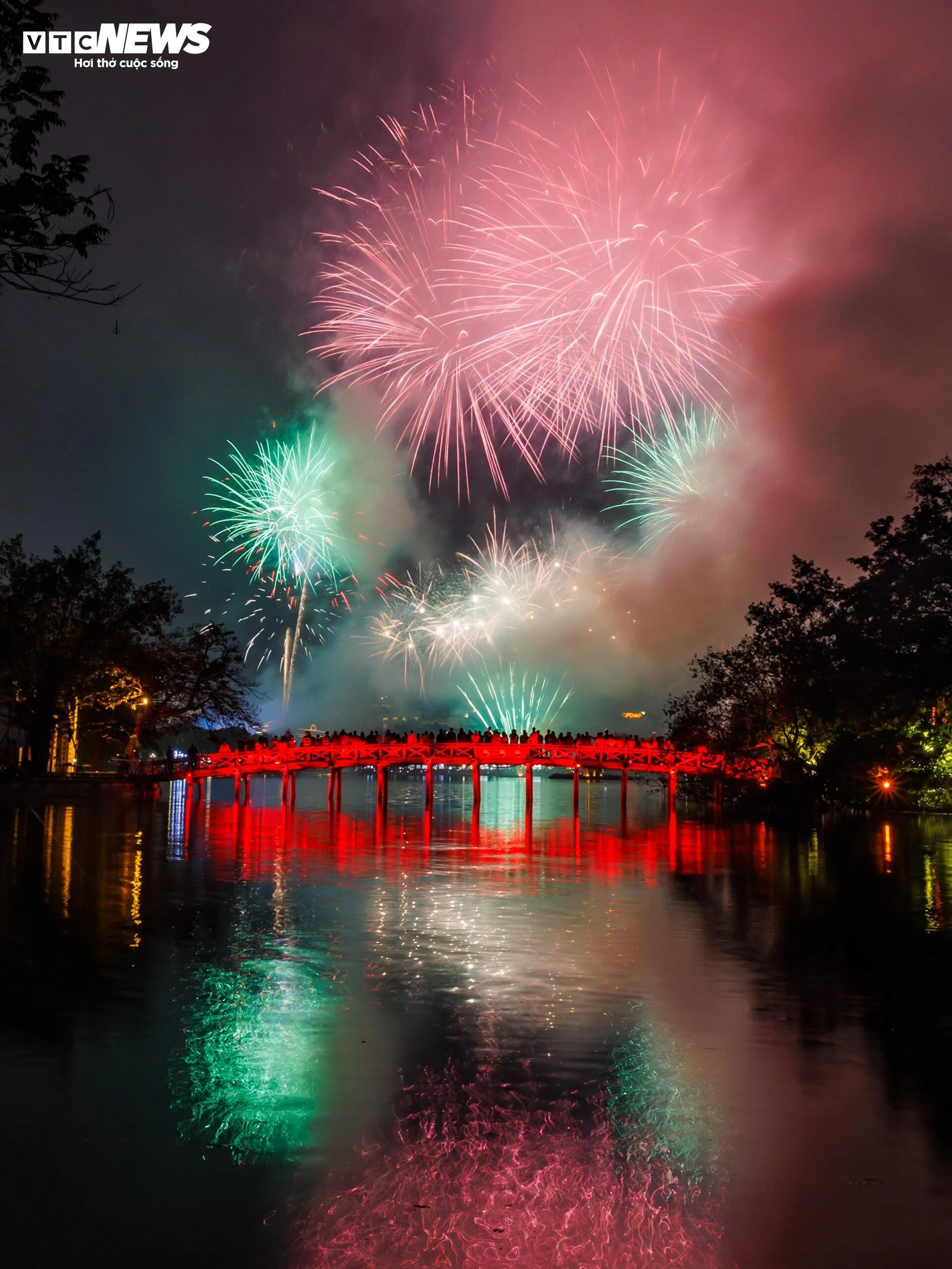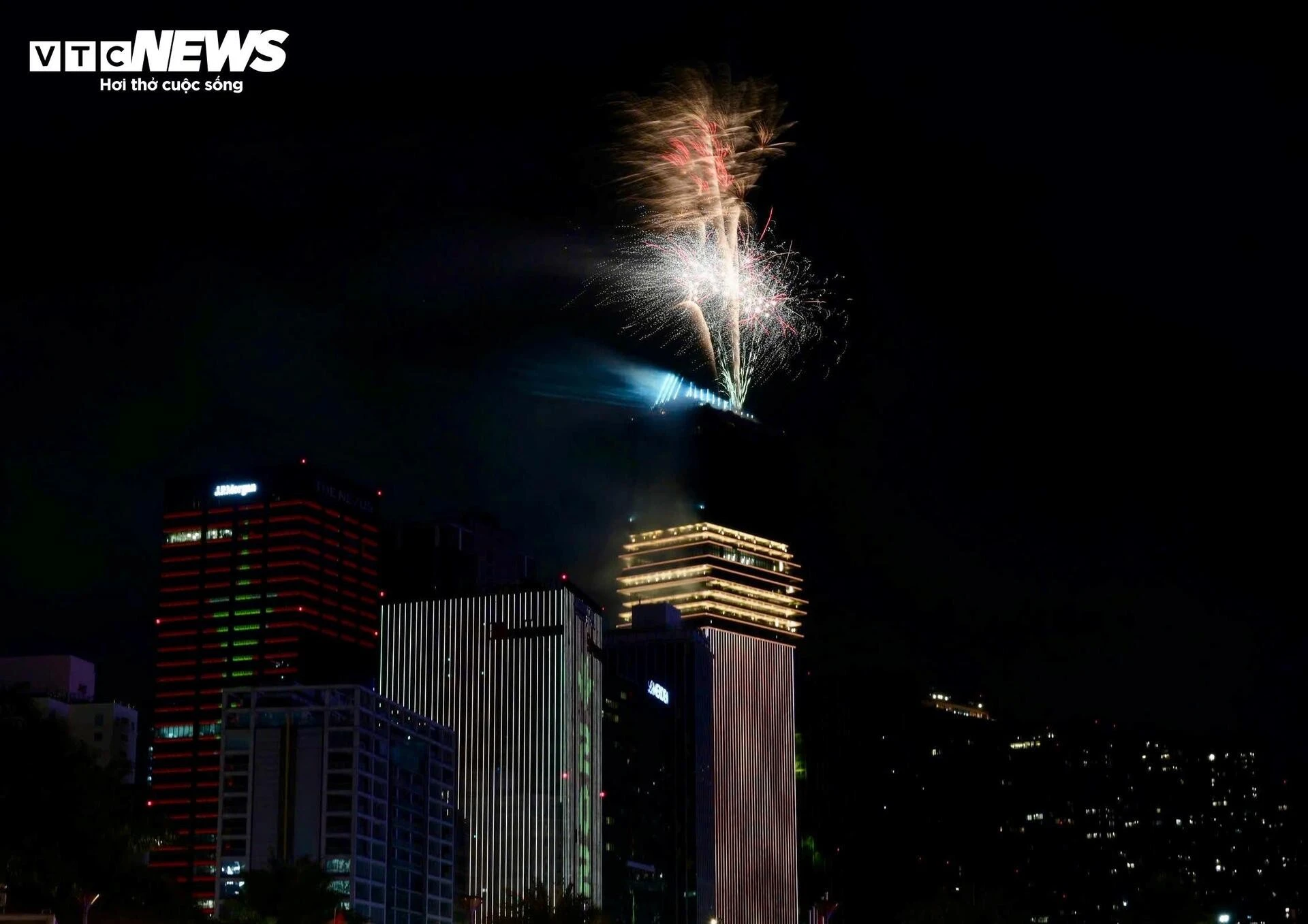 Những chùm pháo hoa tỏa sáng muôn màu, mang hy vọng về năm mới thịnh vượng và phát triển.
